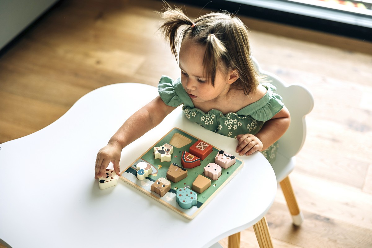 dřevěné puzzle s motivem farmy pro zábavné učení a rozvoj představivosti