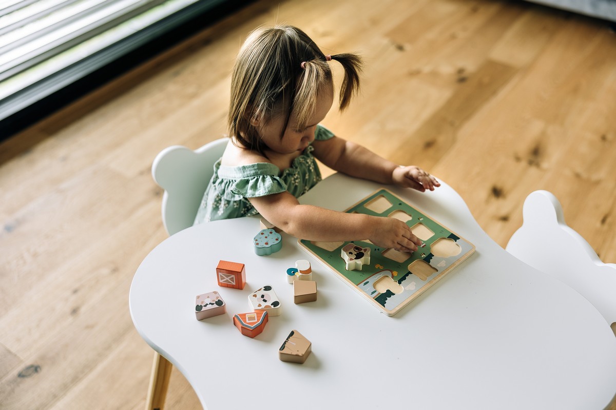 pomáhá dětem poznávat barvy, tvary a logické skládání dílků