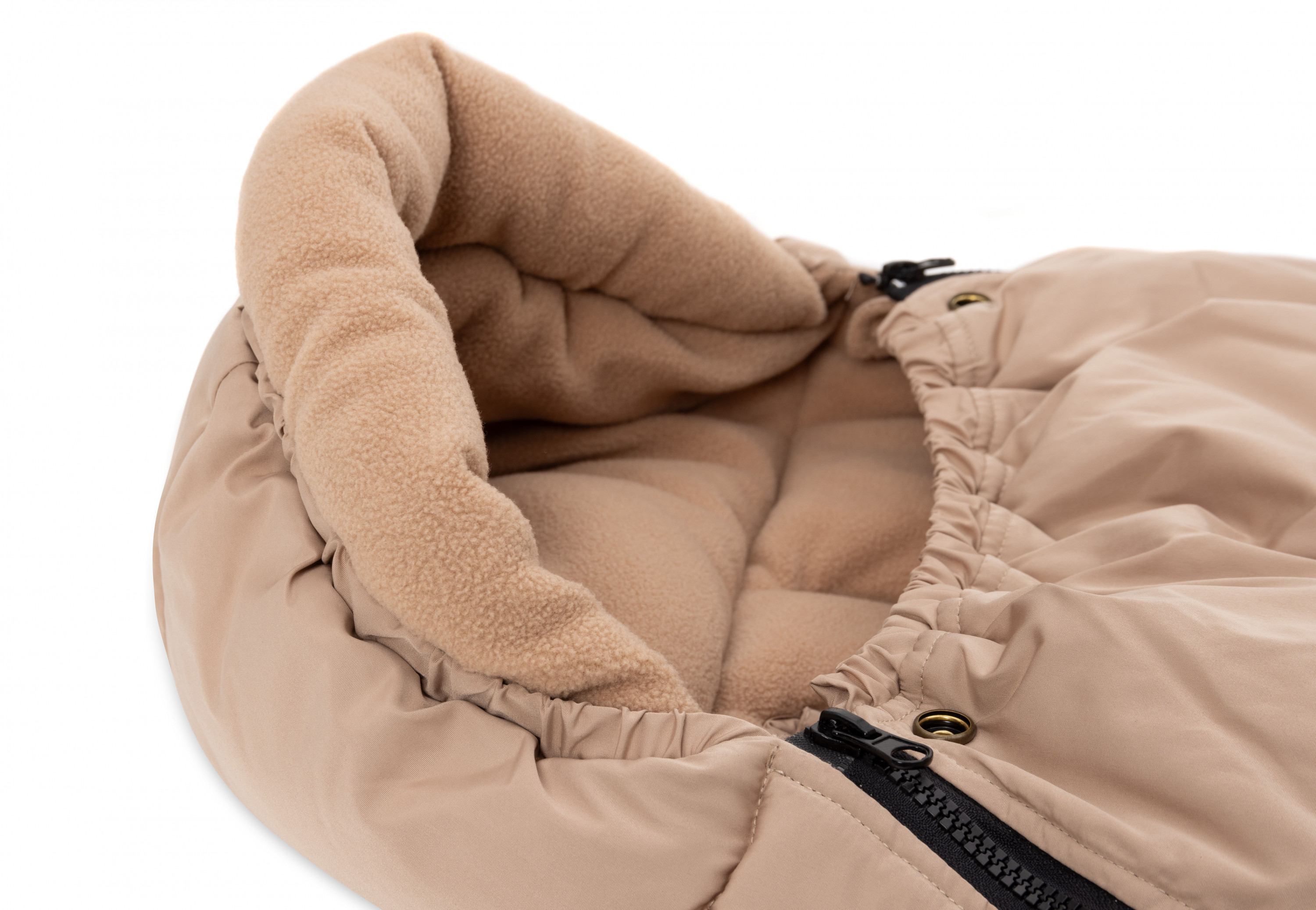 Stylový fusak do autosedačky má vnější část z příjemného prošívaného materiálu s výplní a vnitřní stranu z jemného fleecu pro maximální pohodlí a tepelný komfort dítěte v autosedačce. Otvory v zadní části fusaku umožňují protažení pásů autosedačky, fusak tak můžete mít v autosedačce připravený a po jeho rozepnutí již stačí jen dítě do autosedačky vložit a připoutat. Podle teploty v autě nebo venku fusak s pomocí zipů zapnete či naopak necháte rozepnutý, aby byl zajištěný tepelný komfort dítěte. Zapínání na patentky v horní části fusaku umožňuje vytvořit kapuci pro ochranu hlavičky dítěte např. při přenášení dítěte v autosedačce venku.