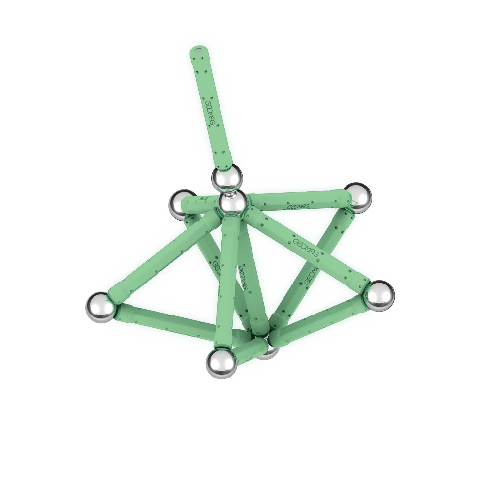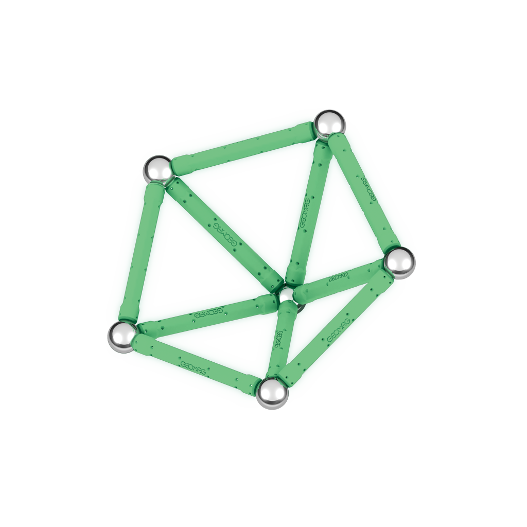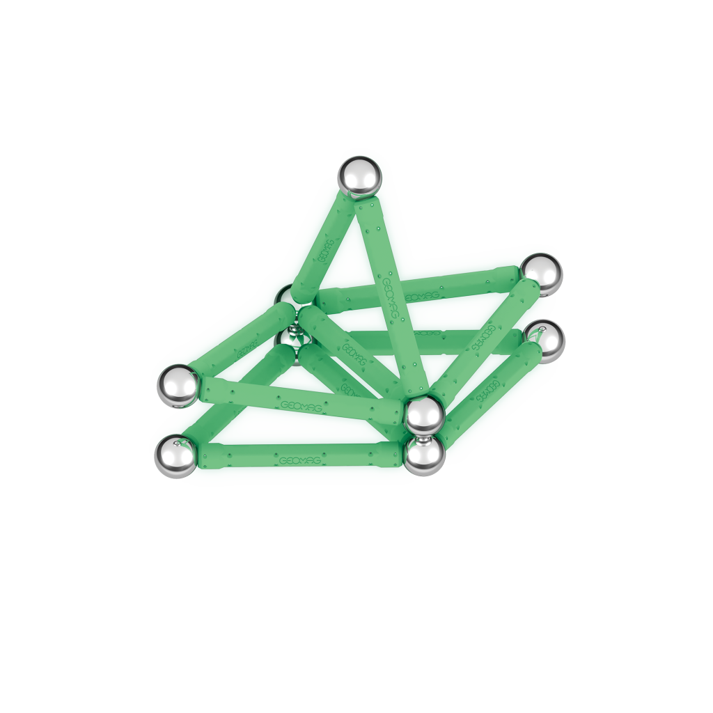 Geomag Glow 25 dílků je magnetická stavebnice, která přináší inovativní zážitek díky svítícím tyčkám, které ve tmě září. Tento unikátní efekt podtrhuje kreativní možnosti konstrukcí a zároveň zvyšuje atraktivitu hry. Sada obsahuje celkem 25 dílků – dvanáct svítících magnetických tyček, dvanáct kovových kuliček a jeden černý stabilní podstavec ve tvaru čtverce, který slouží jako pevná základna pro stavbu různých 3D struktur.