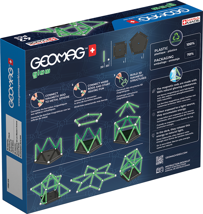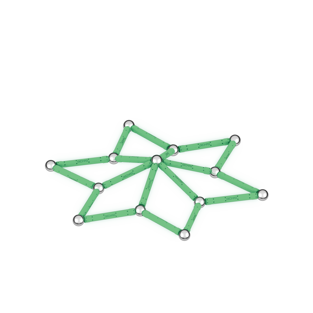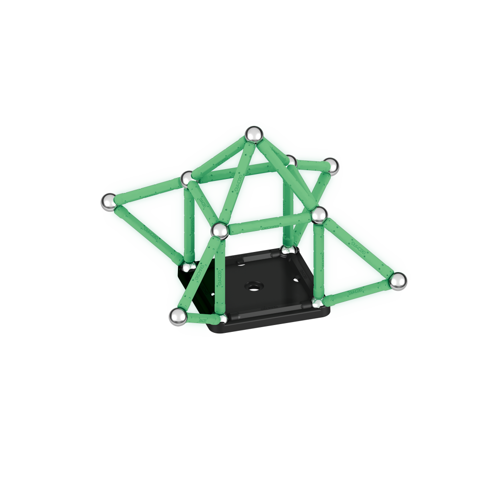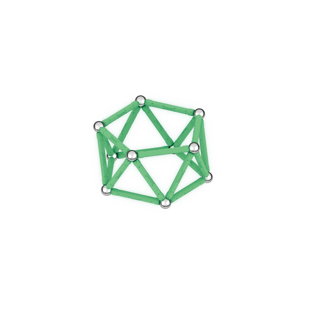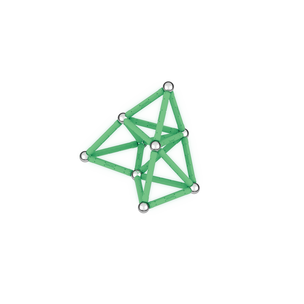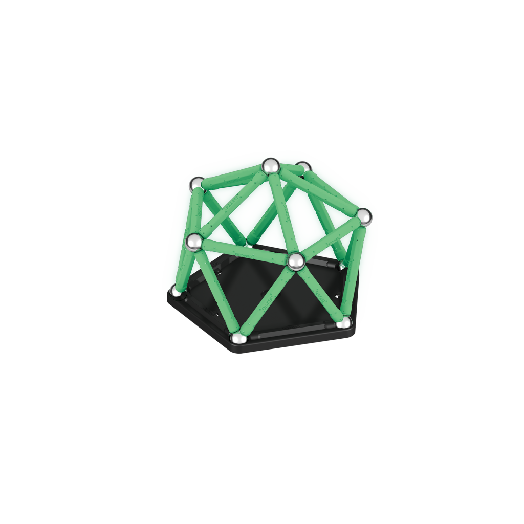 Ve tmě zářící magnetická stavebnice ti přinese nový rozměr zábavy. Stavebnice ze 100% recyklovaného plastu se ve tmě rozhodně neztratí! Balení obsahuje celkem 42 dílků – 20 svítících tyček, 20 kuliček a dva stabilní podstavce černé barvy ve tvaru čtverce a pětiúhelníku. Určeno pro děti od 3 let.