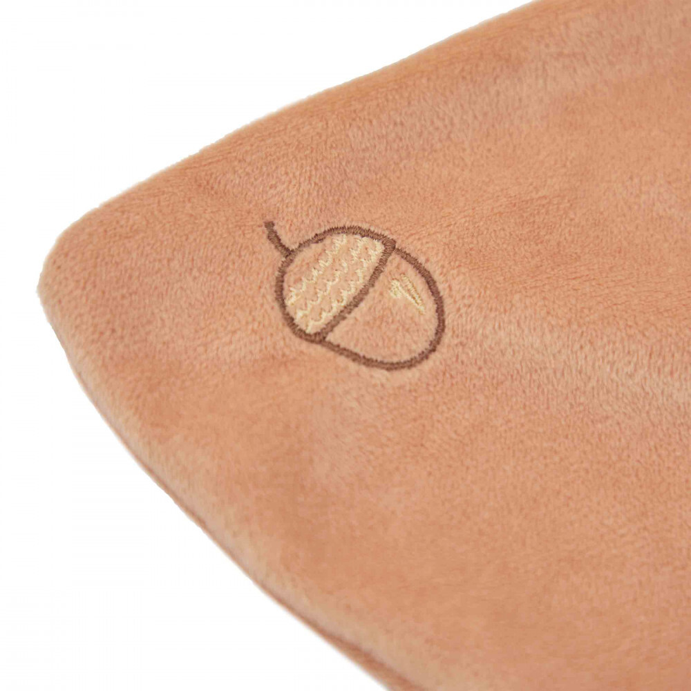 Kaloo Grignoti - Hryzátko veverička je nežný a funkčný spoločník, vytvorený špeciálne pre bábätká, ktoré prechádzajú obdobím prerezávania prvých zúbkov. Táto rozkošná veverička v sebe spája mäkkosť plyšového mojkáčika s praktickým využitím hryzátka, čím poskytuje dieťatku úľavu aj potrebný pocit bezpečia. Hračka z kolekcie Grignoti je vyrobená z mimoriadne jemného mikrozamatu, ktorý je veľmi príjemný na dotyk. Na jednom konci hračky sa nachádza poddajná silikónová časť s textúrou (drážkami a výstupkami), ktorá je ideálna na žuvanie a jemnú masáž citlivých ďasien. Veverička má hrejivú oranžovú farbu a je zdobená detailnou výšivkou lieskového orieška, čo dodáva hračke hravý a originálny charakter. Vďaka svojej veľkosti a ľahkosti je ideálna do malých detských rúk. Značka Kaloo myslí aj na životné prostredie – tento produkt je vyrobený s použitím minimálne 77 % recyklovaných materiálov, pričom výplň tvorí 100 % recyklovaný polyester. Hračka je zabalená v elegantnej darčekovej krabičke, ktorú si môžete prispôsobiť osobným venovaním pod vekom. Krabička je opakovane použiteľná a skvele poslúži na uschovanie prvých drobností vášho bábätka. Veľkosť hračky: 23,5 cm Materiál: recyklovaný polyester, mikrozamat, silikón Vhodné pre deti: od narodenia (0m+) Kolekcia: Grignoti (zameraná na upokojenie pri prerezávaní zúbkov) Mäkká silikónová časť s textúrou pre masáž a stimuláciu ďasien Ekologické spracovanie s využitím recyklovaných vlákien Údržba: pranie v práčke pri teplote 30 °C (jemný cyklus) Balenie v štýlovej, personalizovateľnej darčekovej krabičke