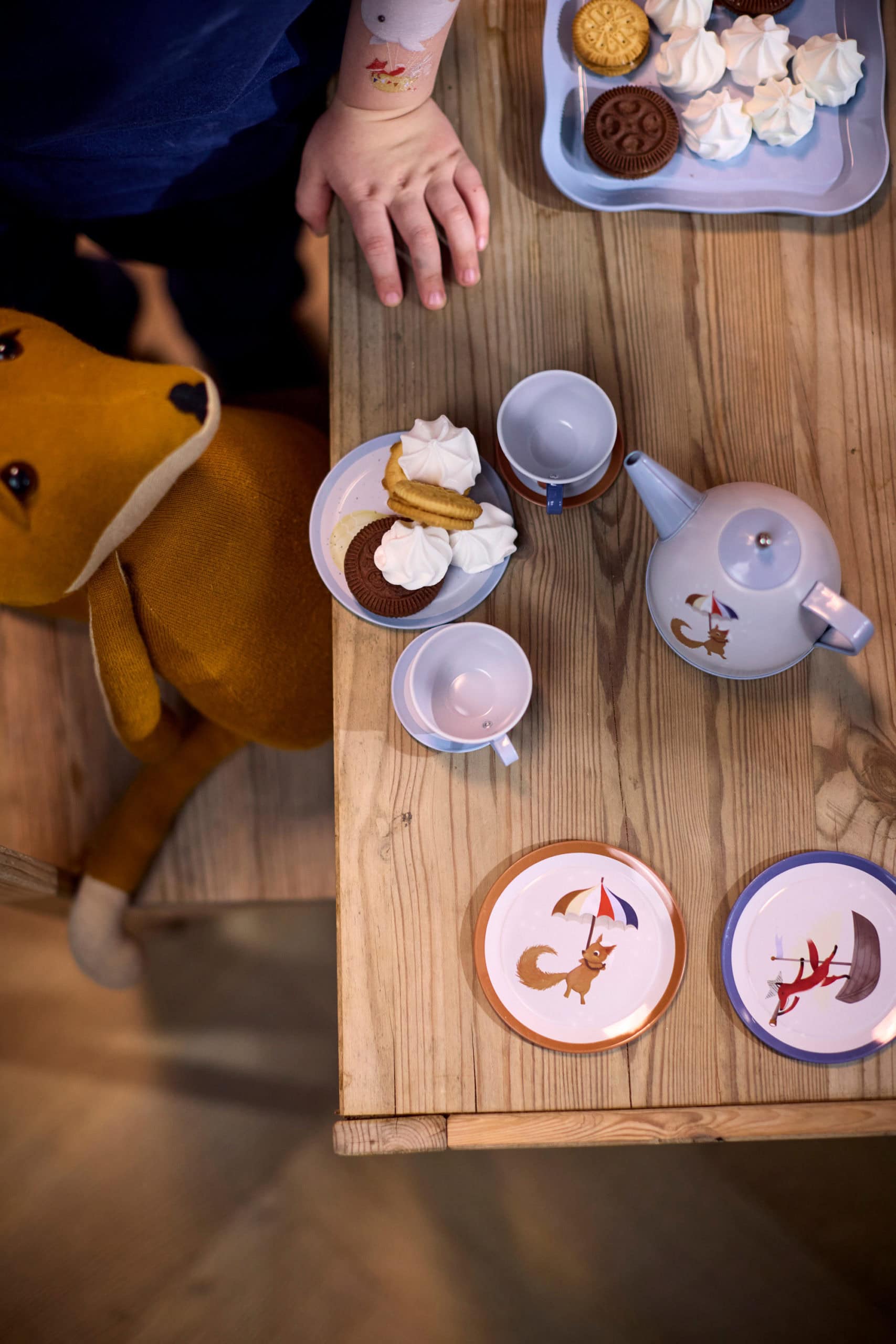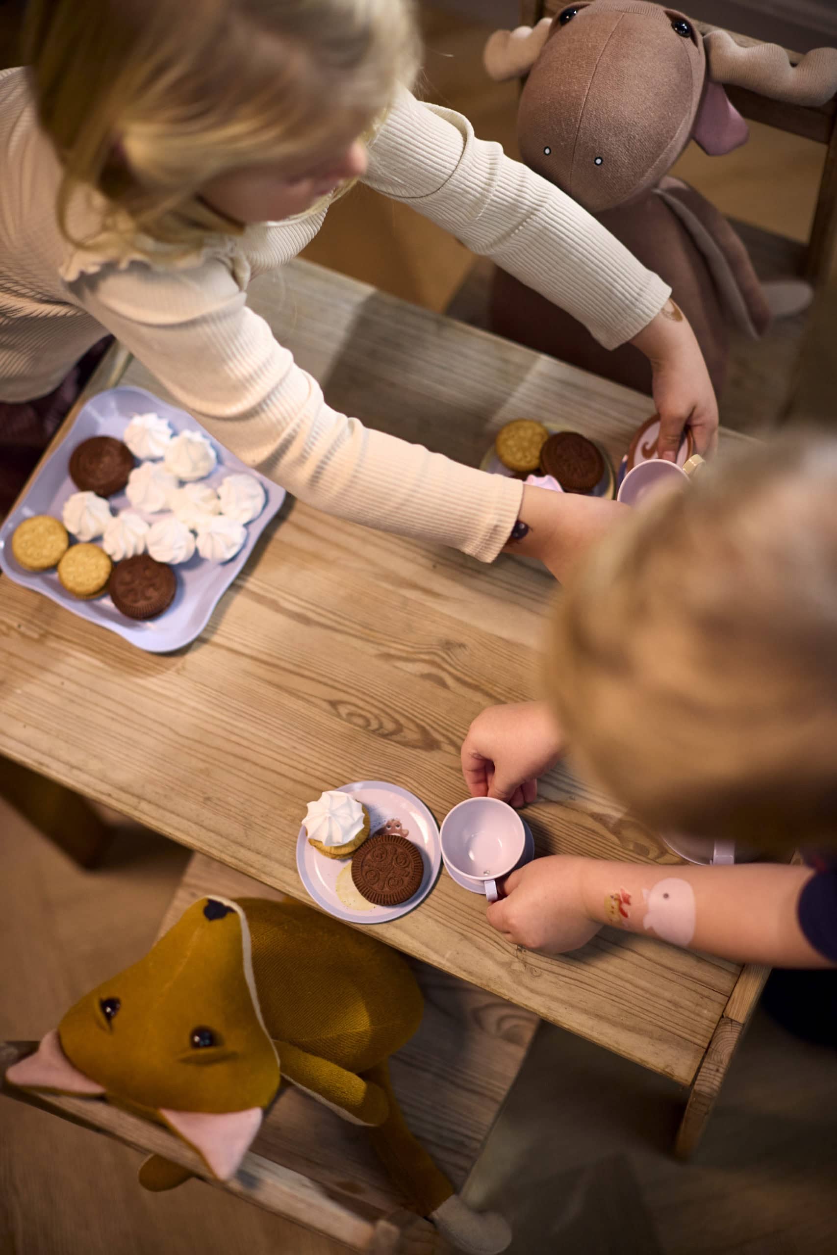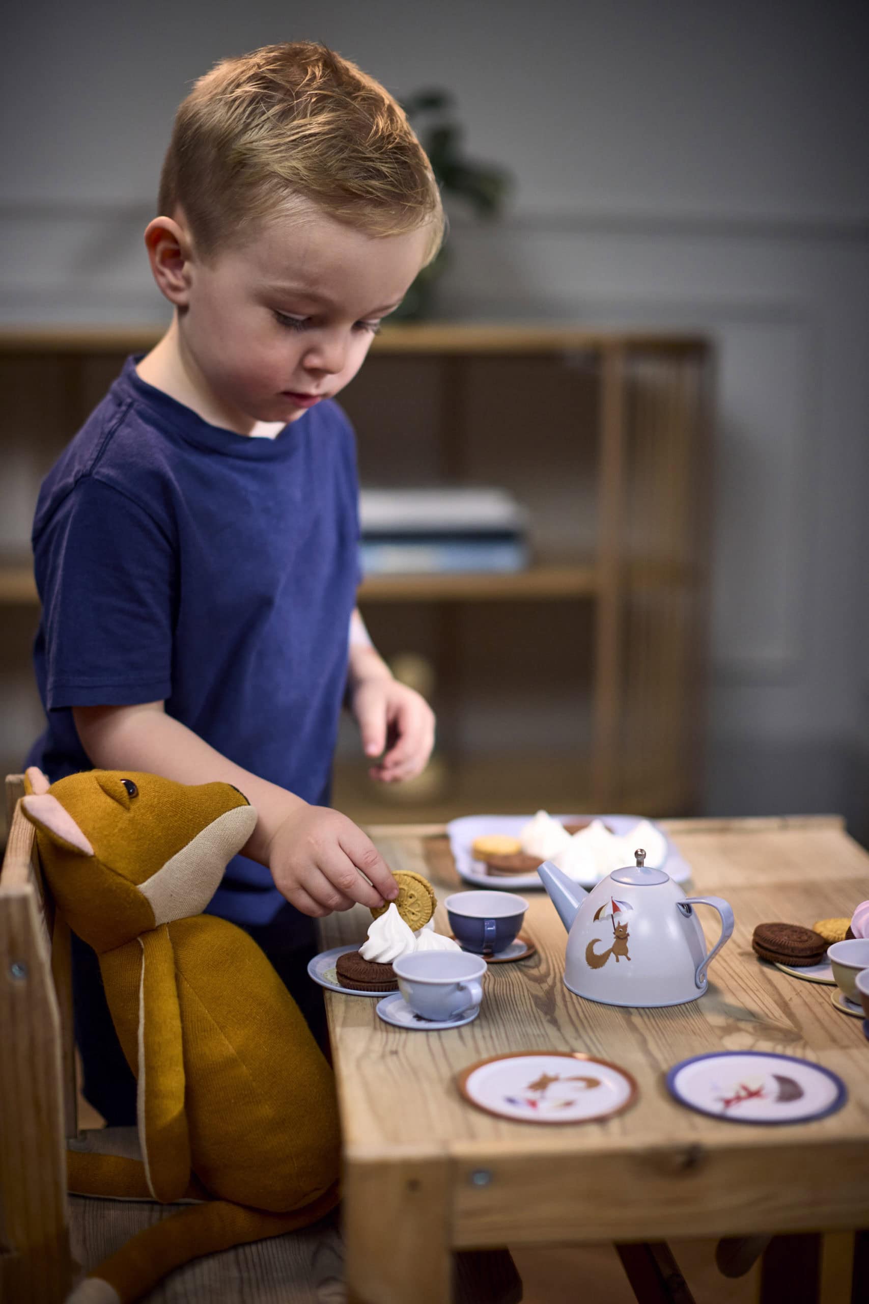 Každé dieťa sa poteší nadčasovej radosti z usporiadania čajového večierka! S týmto pôvabným čajovým setom od FILIBABBA môžu pozvať na zábavu svojich obľúbených plyšových kamarátov, bábiky alebo dokonca mamu a ocka. Set je navrhnutý tak, aby podnecoval fantáziu a hru na roly, prinášal klasickú zábavu do života a zároveň rozvíjal kreativitu, sociálne zručnosti a schopnosť rozprávať príbehy.
