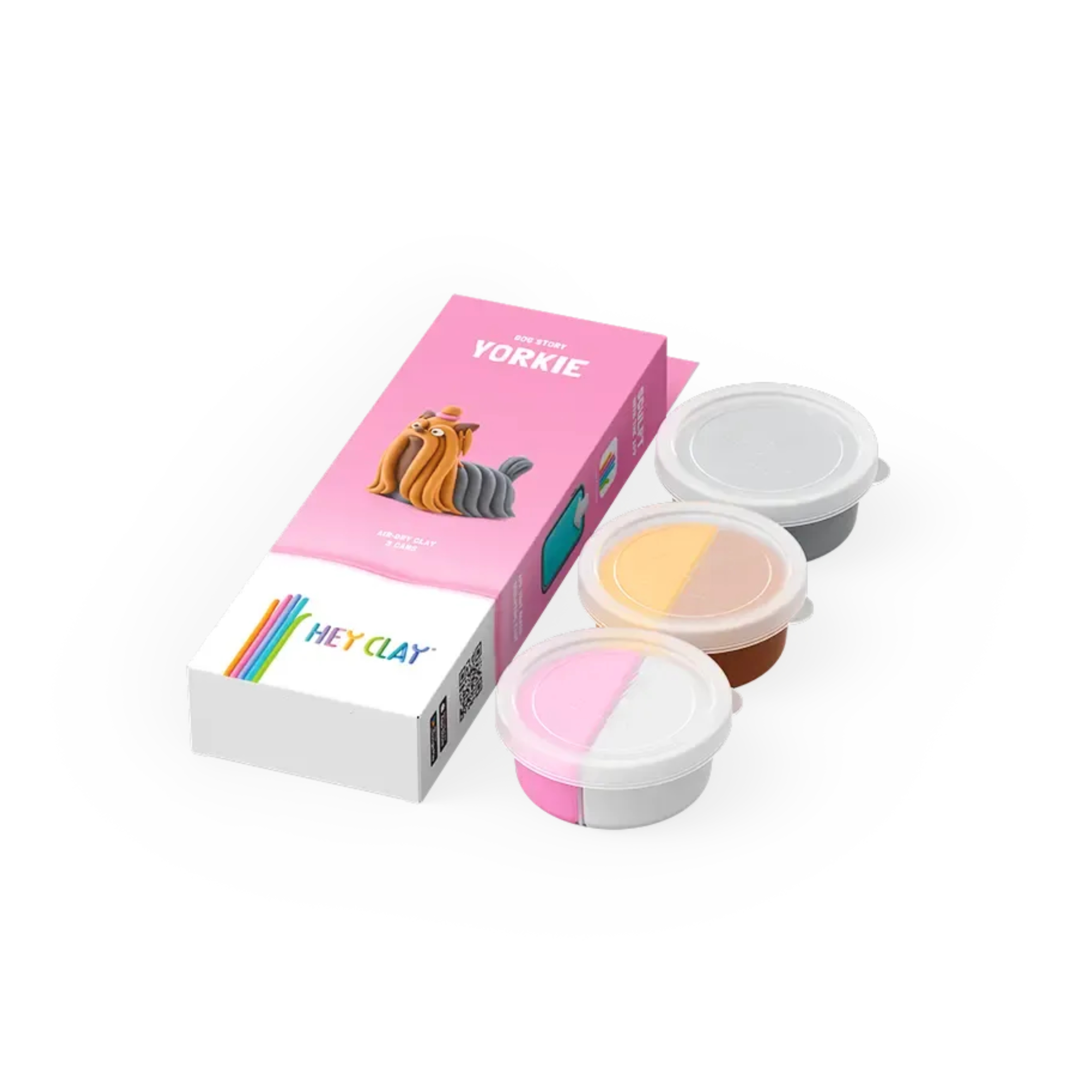 Hey Clay Dog story Yorkshire teriér Vymodelujte si originální postavičku zvířátka Plastelína v pestrých barvách Hey Clay potěší každé dítě, které miluje svět kreativního tvoření – podporuje jemnou motoriku, představivot a umožní nekonečné formování. Po vymodelování stačí nechat postavičky zatvrdnout na vzduchu přibližně 24 hodin, čímž se přemění na pevné figurky a jsou připraveny na další dobrodružství a hry.Tvoření se žádné meze nekladou Barevný rozměr zábavy - obsahuje 3 nádoby s měkkou, jemnou a voňavou plastelínouBezpečné složení - netoxická plastelína vhodná i pro nejmenšíPodporuje rozvoj dovednosti - modelování rozvíjí prsty a koordinaciVšestranné využití - na doma, do školy, na tvůrčí dílnyPřístupový kód do aplikace - dětičky se mohou inspirovat novými nápadyIdeální dárek - pro předškoláky, školáky nebo kreativní rodinné chvíle