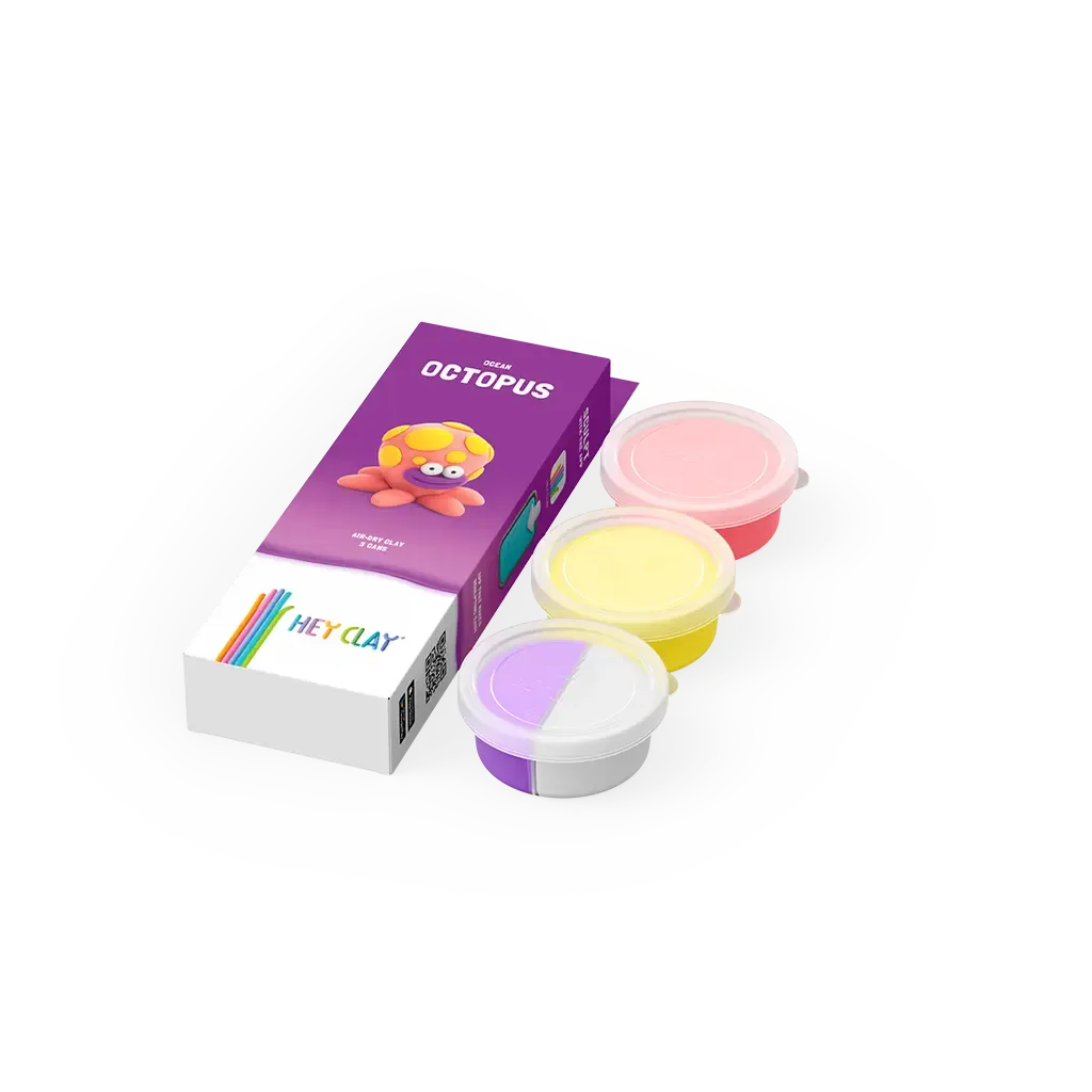 Hey Clay Oceán Chobotnice Vymodelujte si originální postavičku zvířátka Plastelína v pestrých barvách Hey Clay potěší každé dítě, které miluje svět kreativního tvoření – podporuje jemnou motoriku, představivot a umožní nekonečné formování. Po vymodelování stačí nechat postavičky zatvrdnout na vzduchu přibližně 24 hodin, čímž se přemění na pevné figurky a jsou připraveny na další dobrodružství a hry.Tvoření se žádné meze nekladou Barevný rozměr zábavy - obsahuje 3 nádoby s měkkou, jemnou a voňavou plastelínouBezpečné složení - netoxická plastelína vhodná i pro nejmenšíPodporuje rozvoj dovednosti - modelování rozvíjí prsty a koordinaciVšestranné využití - na doma, do školy, na tvůrčí dílnyPřístupový kód do aplikace - dětičky se mohou inspirovat novými nápadyIdeální dárek - pro předškoláky, školáky nebo kreativní rodinné chvíle