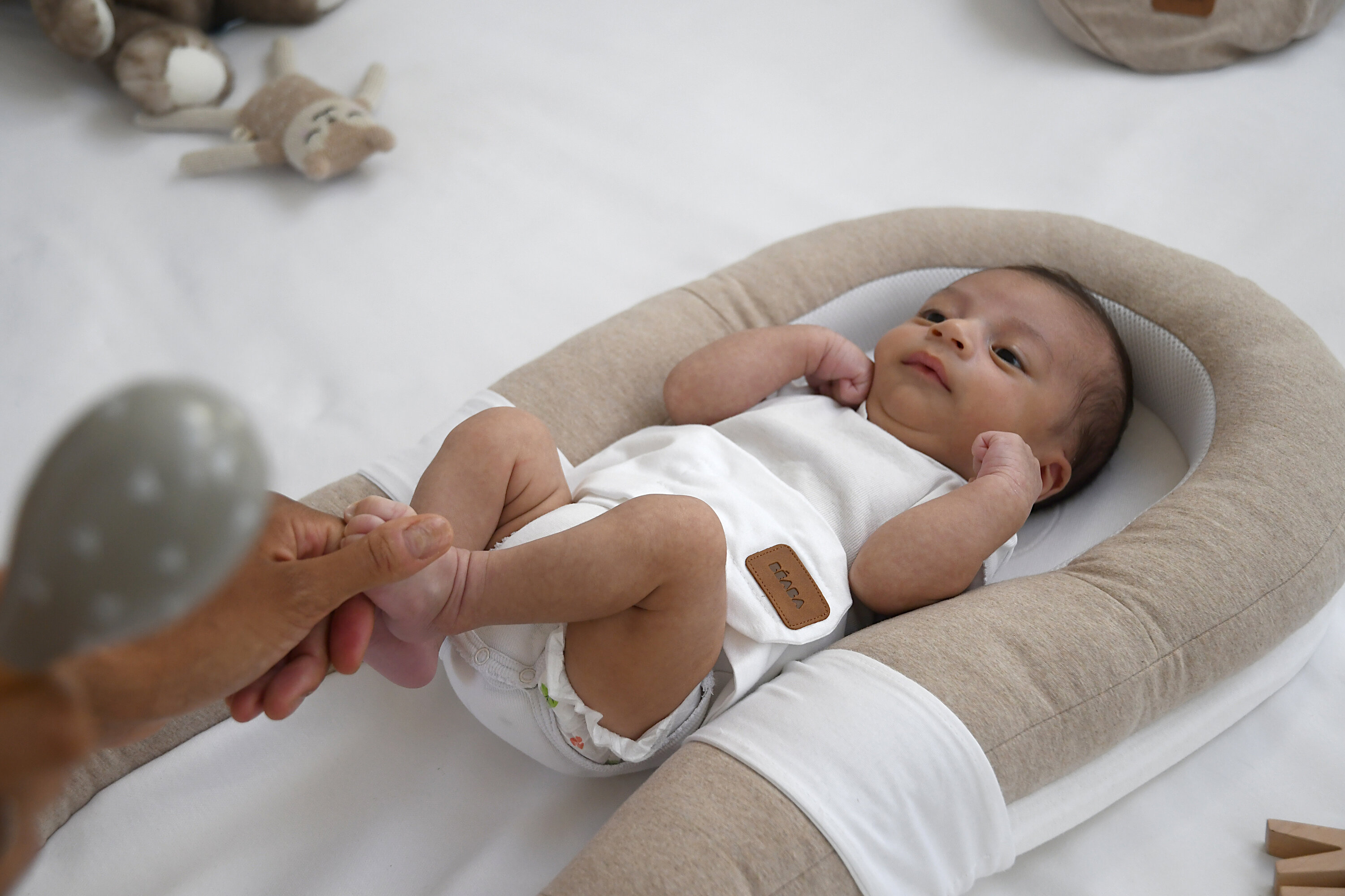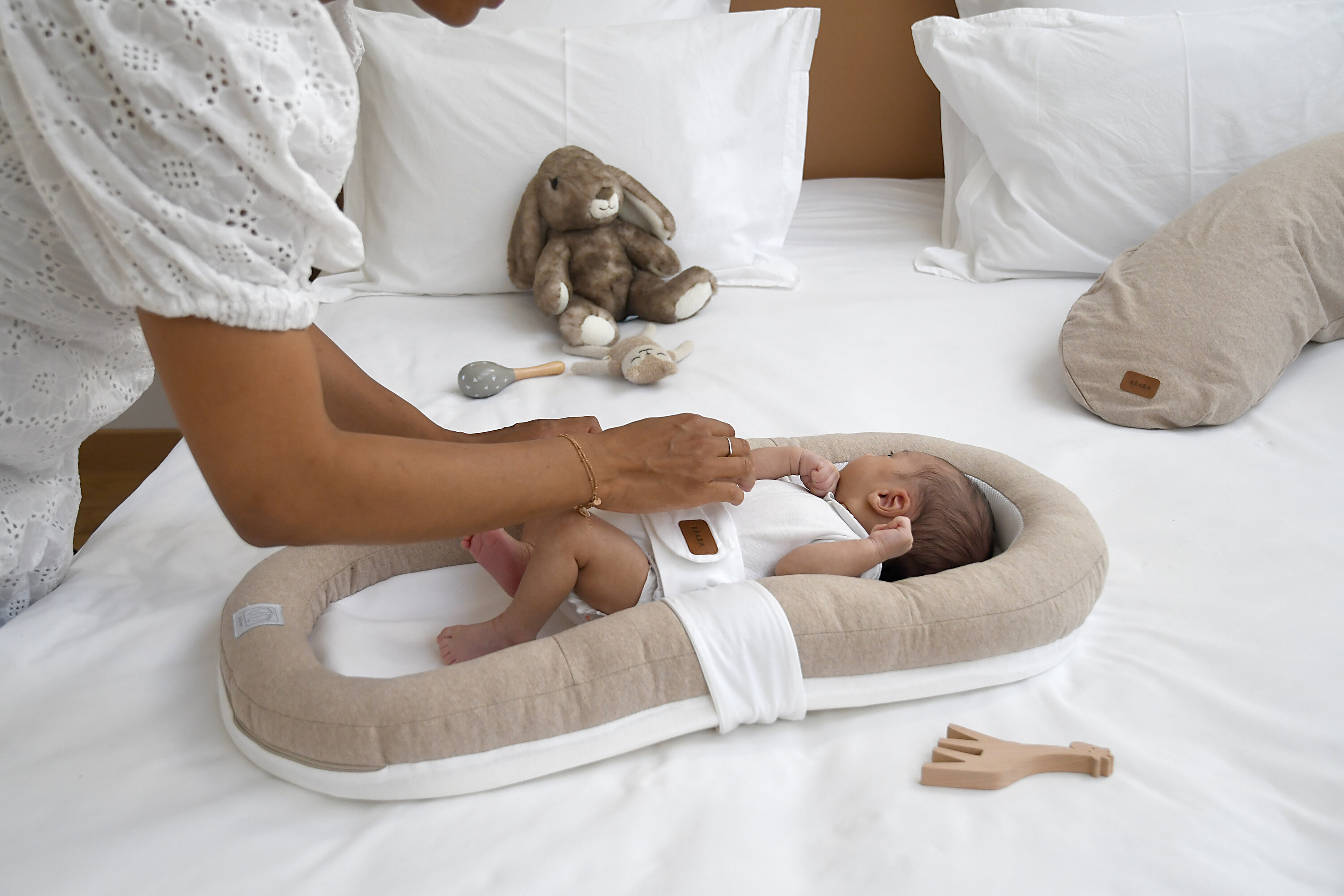 Hnízdo pro miminko Beaba Cocoony je praktický pomocník pro první měsíce života, kdy miminko nejvíc potřebuje blízkost, zklidnění a pocit „objímání“. Měkké vyvýšené okraje vytvářejí útulný prostor, který napodobuje známý pocit z bříška, a pomáhají miminku snáz se uvolnit a usnout.