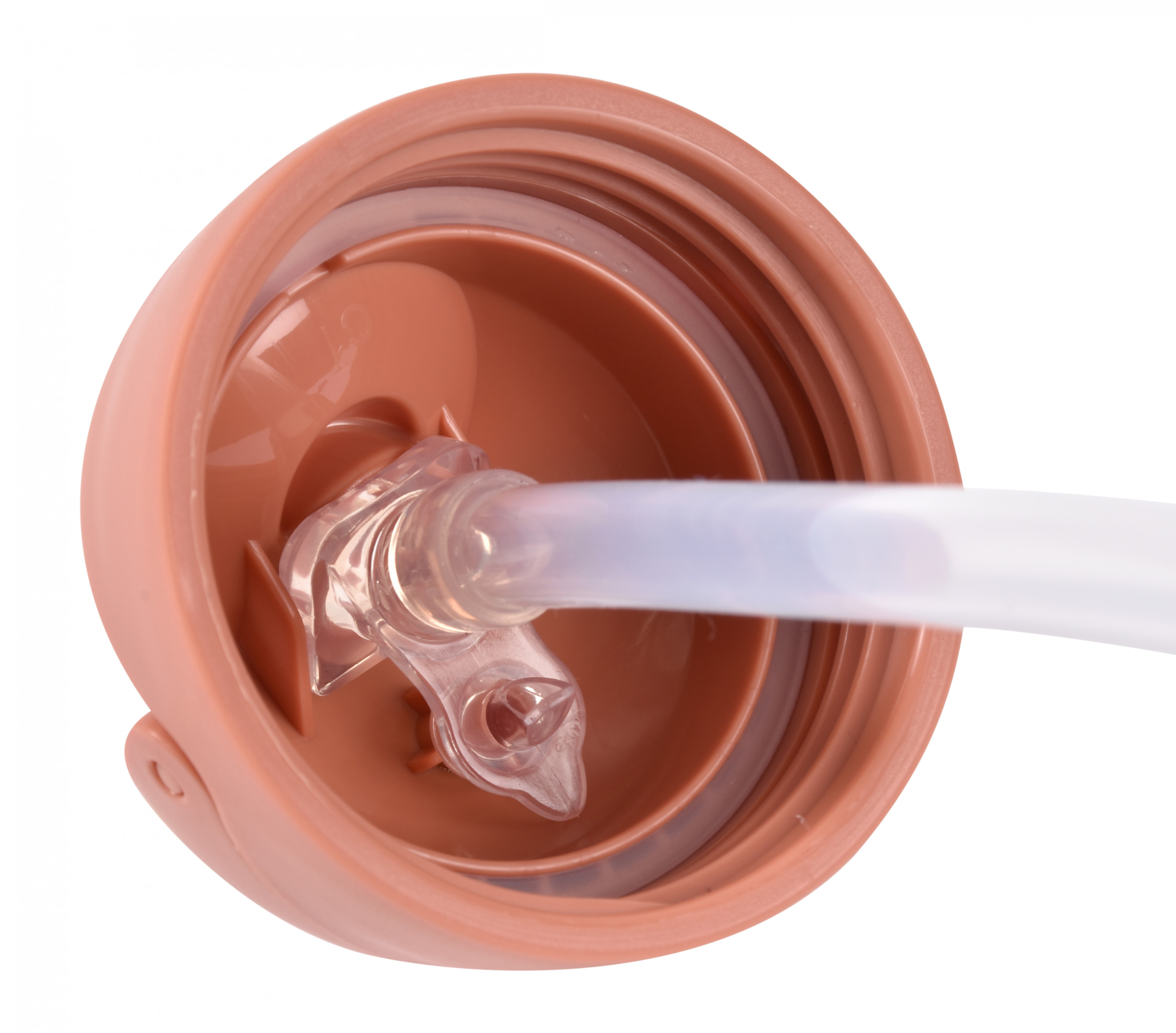 Hrnek se zaklapávacím silikonovým brčkem je ideální pro použití doma i na cestách. Kombinace posuvného víčka a měkkého zaklapávacího brčka je zárukou bezpečného i hygienického přenášení v tašce. Ventil v brčku navíc brání vylití obsahu lahvičky při převržení i když víčko není zaklapnuté. Odnímatelná držadla usnadňují dítěti držení hrnku.