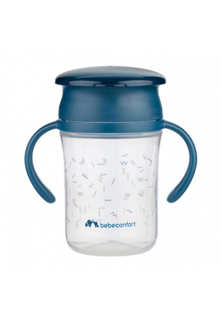 Trénovací hrnek 360° nabízí unikátní řešení, jak naučit dítě pít z hrnku bez pítka. Díky speciální membráně hrnek nevyteče při převržení. Dítě může pít z kteréhokoli místa po obvodu horní hrany hrnku. Odnímatelná držadla usnadňují dítěti držení. Víčko chrání hygienickou čistotu hrnku při přenášení.