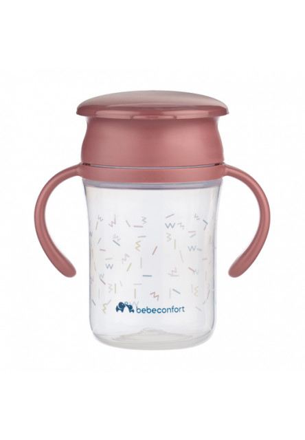 Trénovací hrnek 360° nabízí unikátní řešení, jak naučit dítě pít z hrnku bez pítka. Díky speciální membráně hrnek nevyteče při převržení. Dítě může pít z kteréhokoli místa po obvodu horní hrany hrnku. Odnímatelná držadla usnadňují dítěti držení. Víčko chrání hygienickou čistotu hrnku při přenášení.