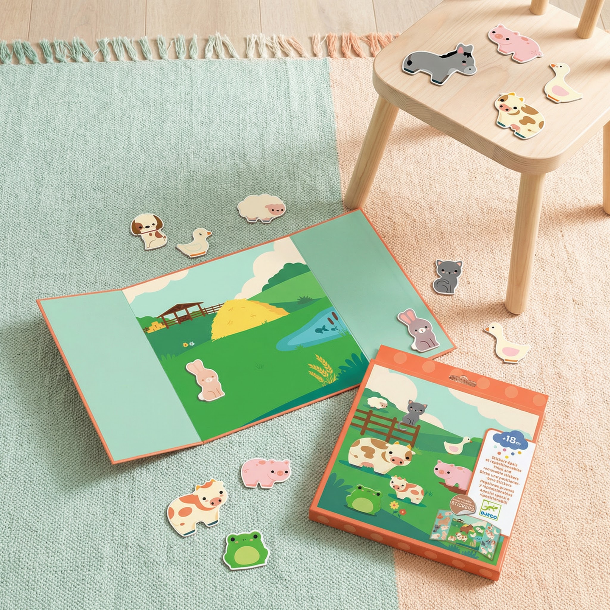 Odnímatelné samolepky Zvířátka z farmy První samolepky pro nejmenší: velká farmářská zvířátka, která můžeš lepit znovu a znovuSilné snímatelné samolepky – Zvířátka z farmy jsou jednoduchá aktivita pro malé děti, které milují zvířátka a samolepky.Dítě doplňuje velký třídílný obrázek (triptych) a vytváří vlastní farmářské scény pomocí 15 silných vinylových samolepek, které lze opakovaně sejmout a znovu nalepit.Rychlý přehled doporučený věk: od 18 měsíců co děti dělají: doplňují farmu a vymýšlejí příběhy velikost pozadí: přibližně 43 × 23 cm výhody samolepek: silné, dobře se drží, opakovaně snímatelné rozvíjí: jemnou motoriku, slovní zásobu, fantaziiObsah balení 1 třídílné pozadí (triptych) k dotvoření 15 silných vinylových snímatelných samolepek – zvířátka z farmyJak to funguje Rozlož pozadí (triptych) a prohlédni si farmářskou scénu. Vyber samolepku zvířátka a nalep ji tam, kde se ti líbí. Když chceš změnu, samolepku jednoduše sejmeš a přesuneš jinam. Vymýšlej příběhy: kdo je ve chlévě, kdo běží na dvůr a kdo se schoval za plot?Pro koho je pro děti, které se samolepkami začínají a potřebují velké dílky na cesty i domů – rychlá aktivita bez nepořádku pro malé milovníky farmy a zvířátek