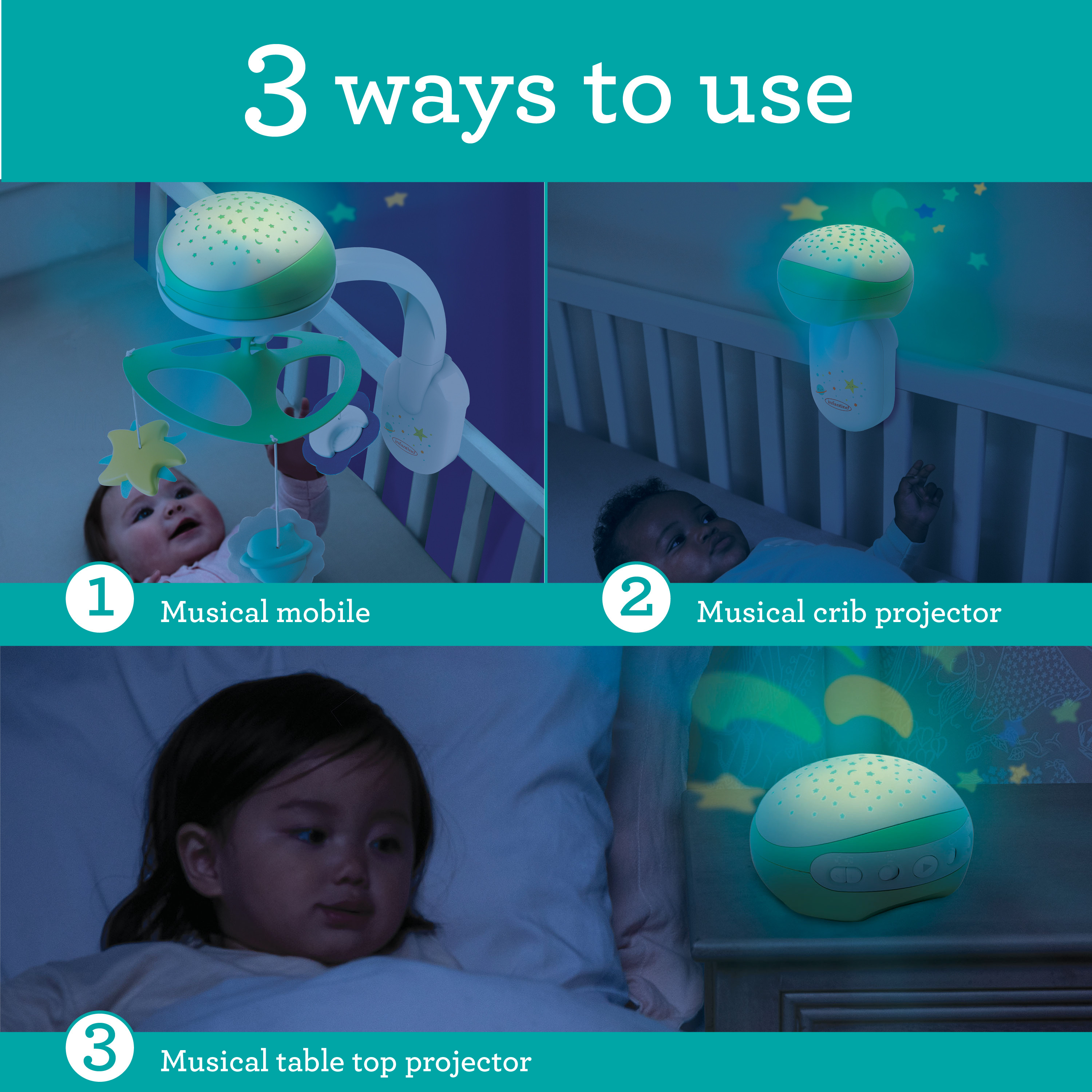 Hudební kolotoč pro snadné usínání i zabavení dítěte nabízí 3 možnosti použití: