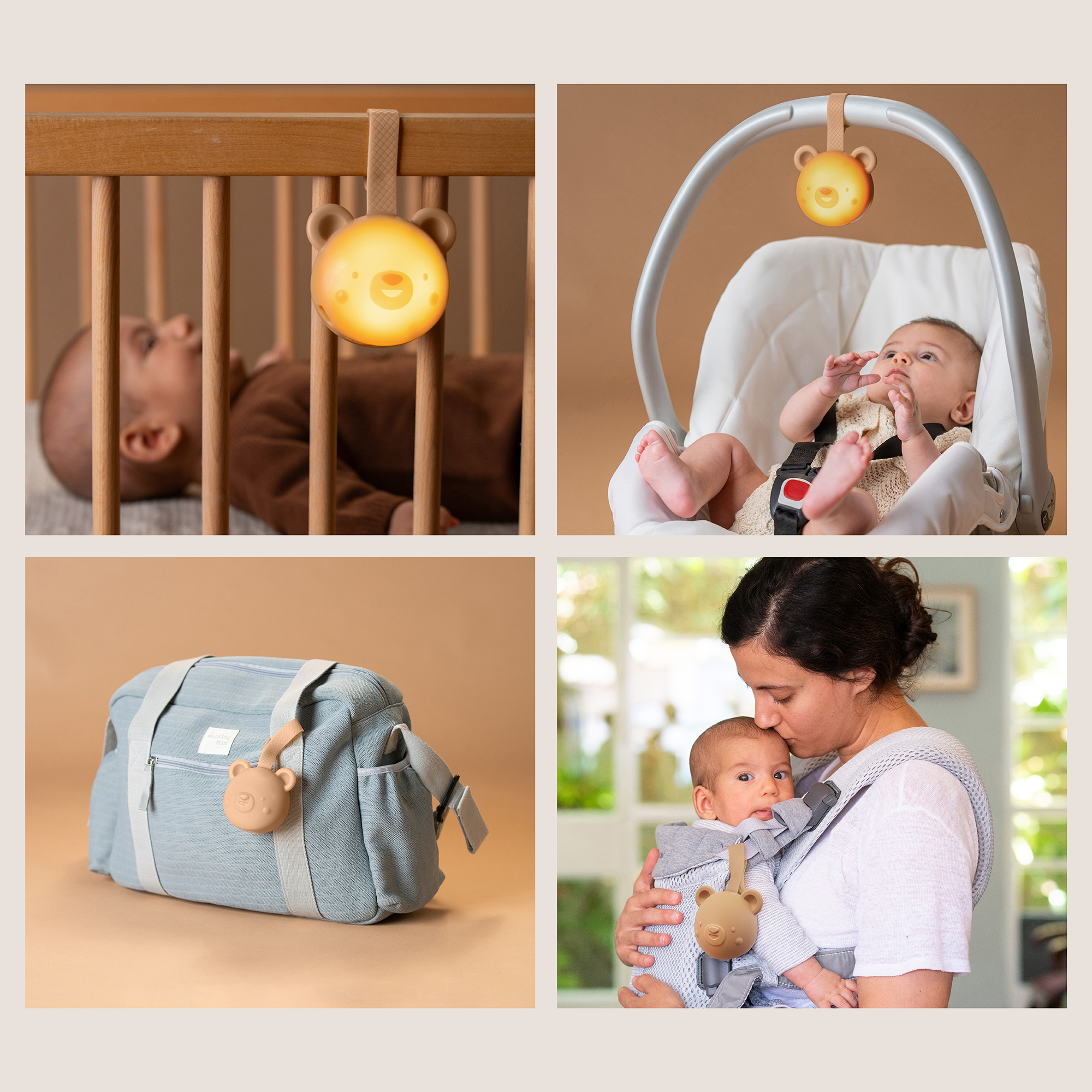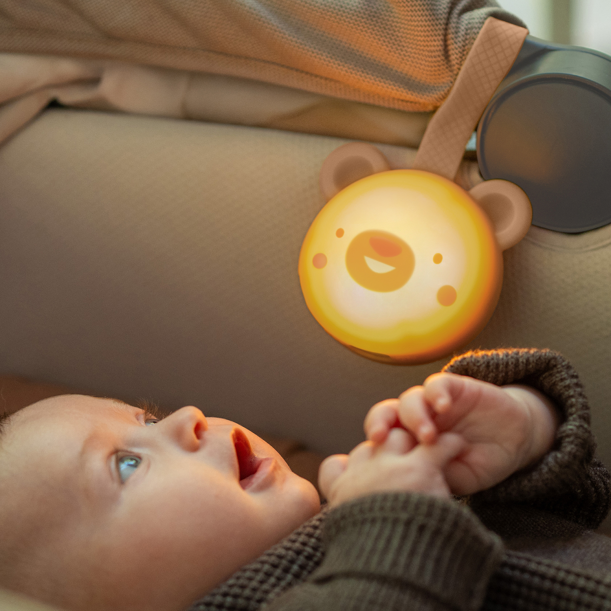 Roztomilý silikonový medvídek Taf Toys nabízí tři funkce v jednom – jemné noční světlo, uklidňující melodie a chytrý senzor pláče pro automatické utišení miminka. Pomáhá vytvořit klidné prostředí pro spánek, odpočinek i cestování a stane se nenahraditelným pomocníkem v každodenní péči o dítě. Je perfektní volbou pro novorozence i batolata a využijete jej doma v postýlce, na procházkách v kočárku i na dovolené či víkendu mimo domov.