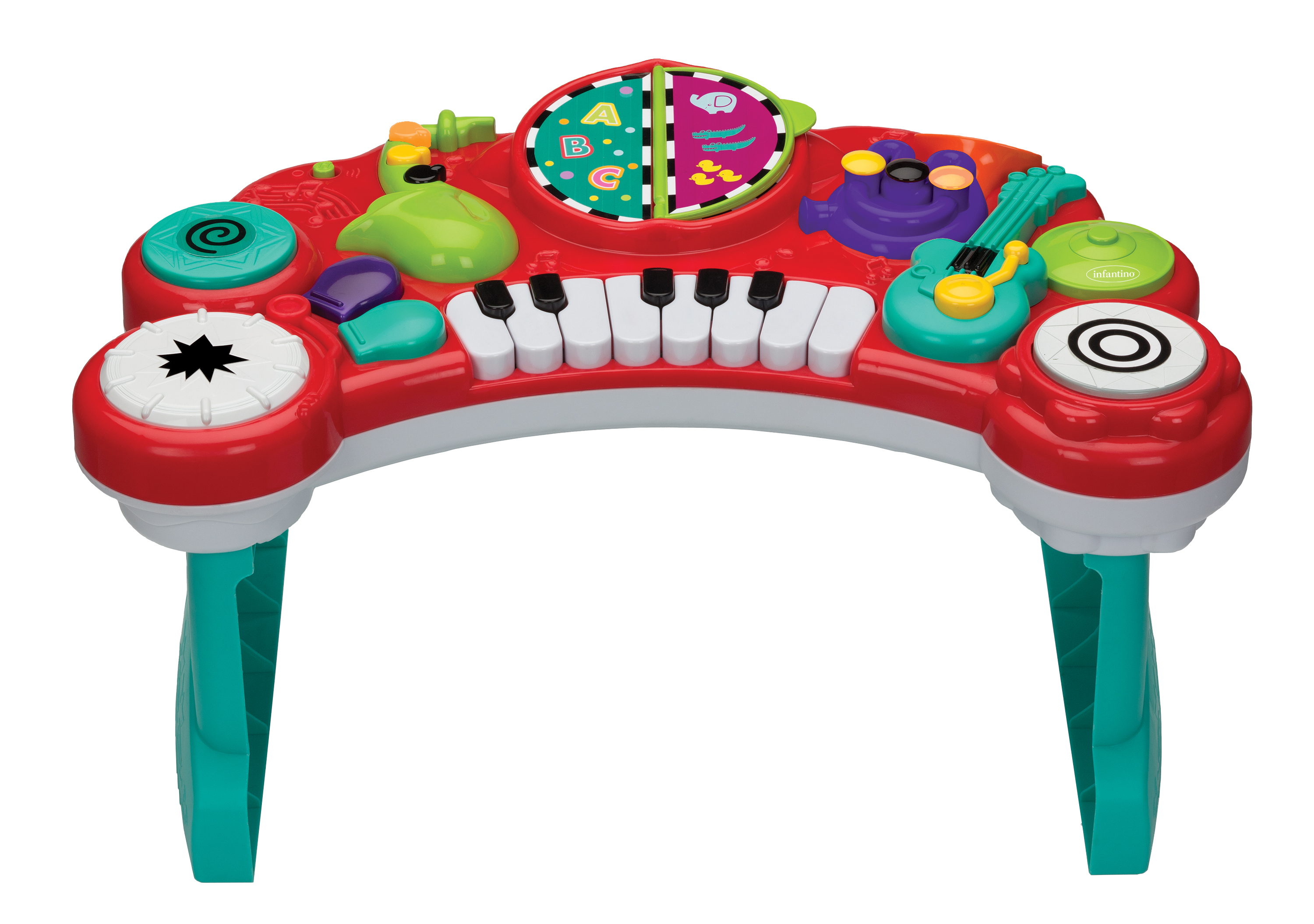Hudobný pult Infantino 10v1 deťom približuje hudbu už od raného veku. Pult ponúka 10 rôznych hudobných nástrojov vrátane klávesov s veľkými tlačidlami pre ľahké hranie malými detskými prstíkmi. Súčasťou je aj obojstranný „spevník“, ktorý po otočení automaticky prehráva rôzne veselé skladby a rozširuje možnosti hrania. Pult prehráva viac ako 25 melódií a zvukových efektov.