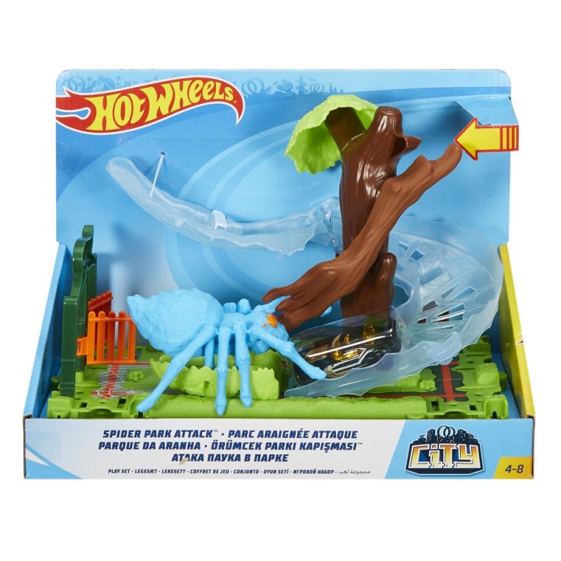Mesto Hot Wheels® je uväznené pod nadvládou príšer! Použi svoje Hot Wheels® a vydaj sa na záchranu mesta! Priprav sa na poriadne kaskadérske kúsky, prebojuj si cestu týmito tematickými hernými setmi a zachráň mesto Hot Wheels®. Všetky mestské časti z kolekcie Hot Wheels® mesto možno jednoducho spojiť dokopy vďaka novému spojovaciemu systému, ktorý je kompatibilný aj so všetkými tvojími oranžo-dráhami. Vyber si svoj herný set alebo ich pozbieraj všetky a uži si veľa zábavy, dobrodružstiev a kaskadérskych kúskov.