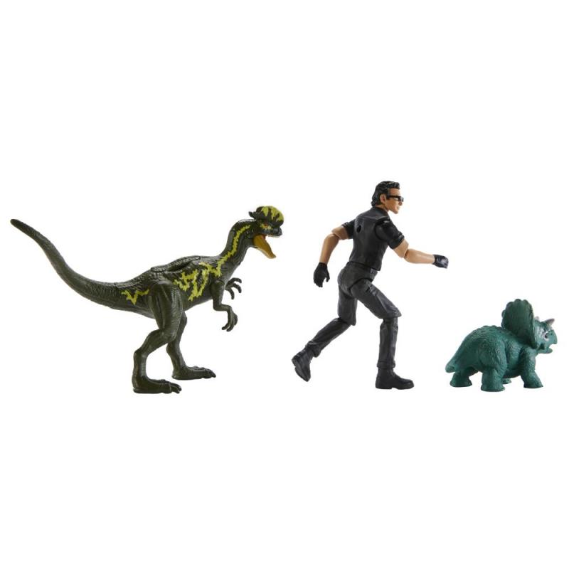 Tento pôvodný nostalgický set Jurský svet Ian Malcolm s dinosaurami a doplnkami obsahuje polohovateľnú figúrku Iana Malcolma s odnímateľným taktickým klzákom InGen s 22 cm širokými krídlami. Dilophosaurus má DNA tag pre rozšírené digitálne hranie a je dodávaný s odnímateľným záchytným zariadením pre hlavu a nohu. Detský Triceratops sa dodáva s odnímateľným odchytovým postrojom. Medzi ďalšie príslušenstvo patrí odpaľovač uspávacích látok a kryo-obal embryí.