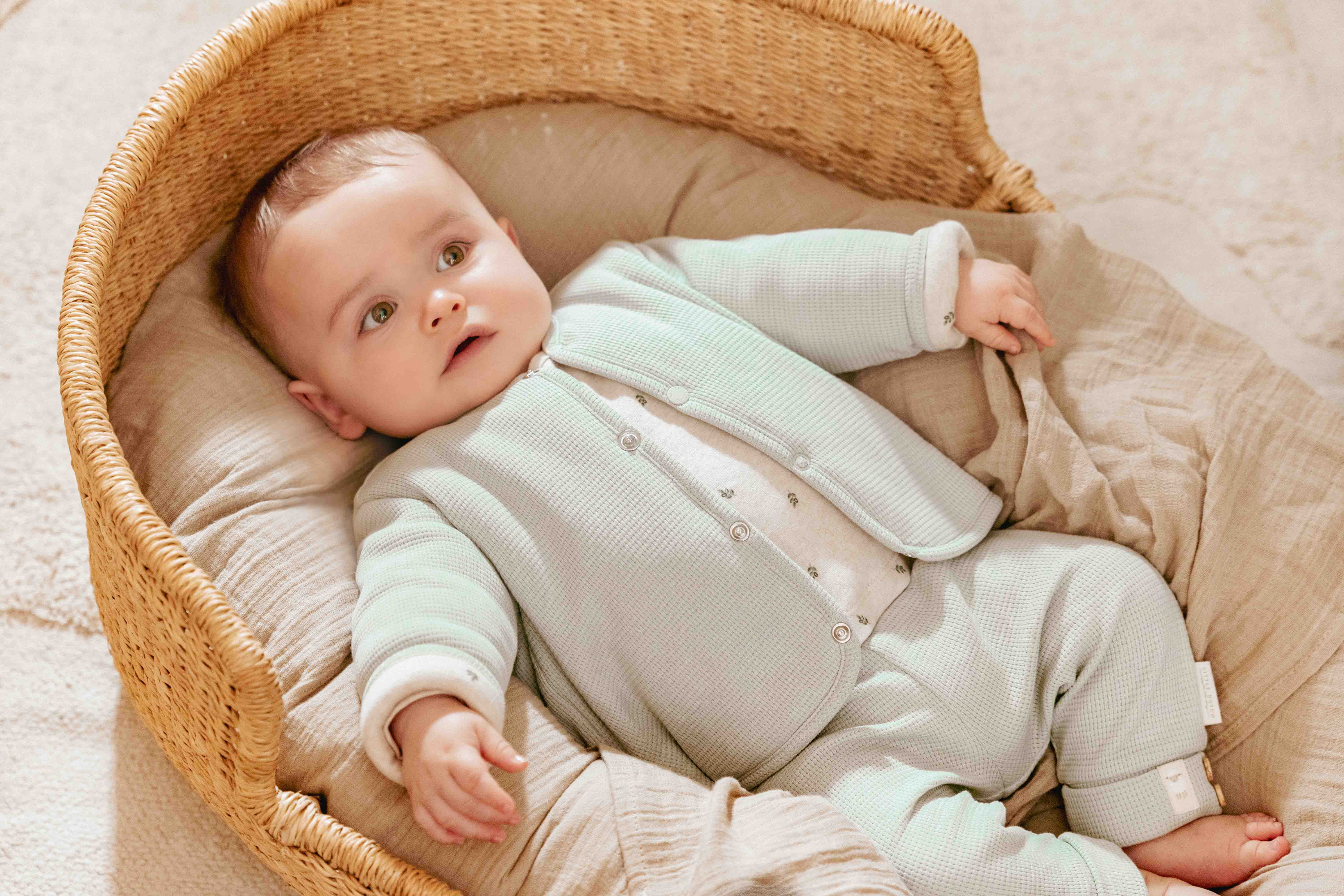 Zateplený kabátek z měkké organické bavlny má zapínání na patentky na přední straně pro snadné oblékání dítěte.
