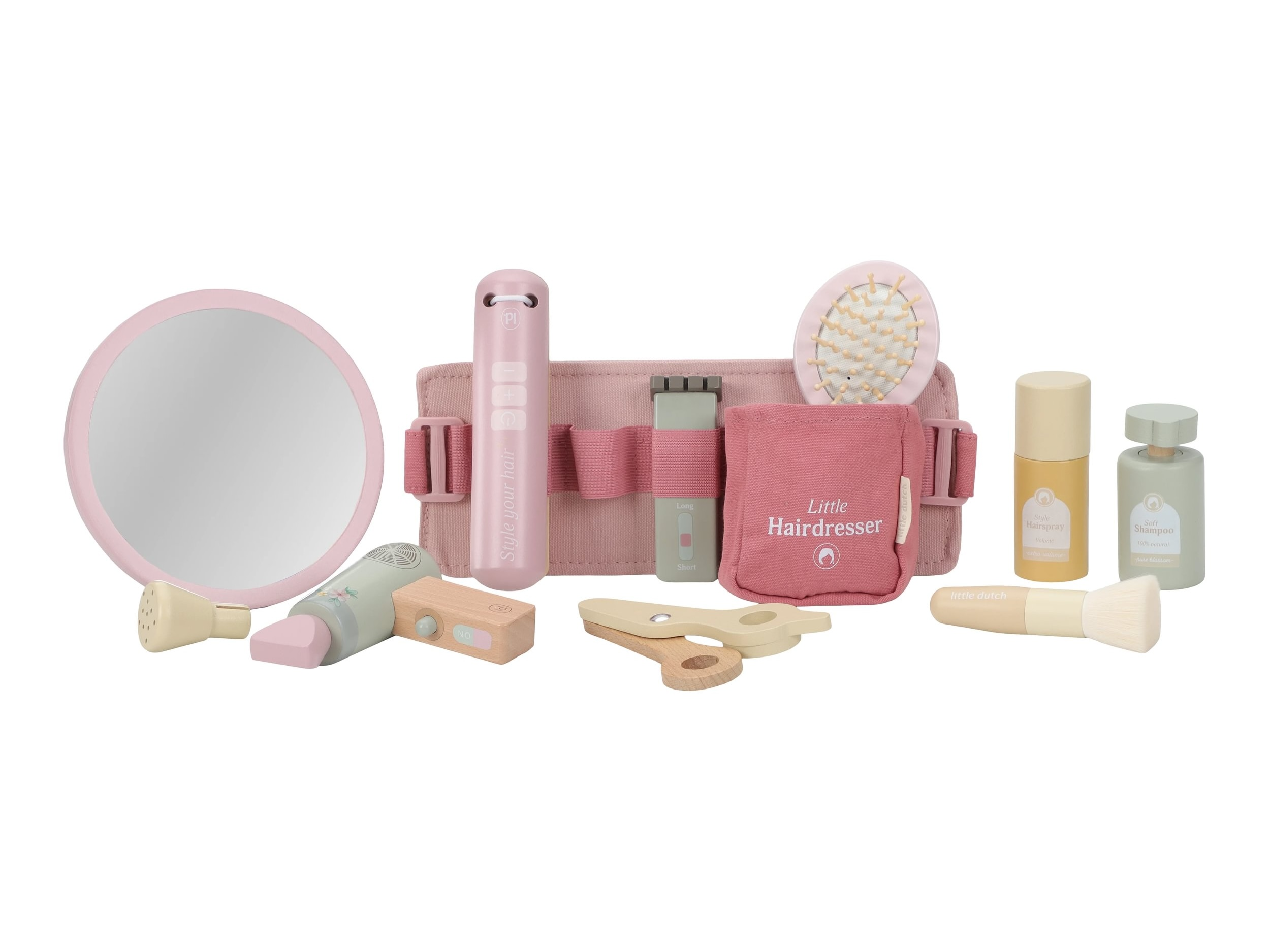 Stříhání, foukání a vytváření účesů jako u opravdového kadeřníka, to vše přináší dětem tato kouzelná dřevěná sada Little Dutch. Najdou v ní vše, co potřebují k otevření vlastního salonu krásy pro panenky, sourozence i kamarády. Kdo bude první zákazník?