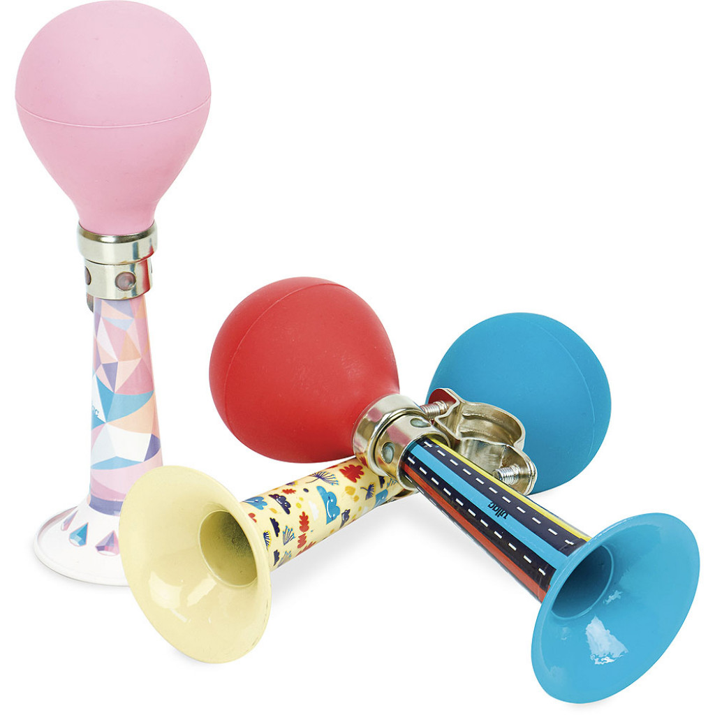 Klaksón v troch farebných prevedeniach, s kovovým očkom na pripevnenie k riadidlám. Hlavné vlastnosti: vhodný na rám detského bicykla