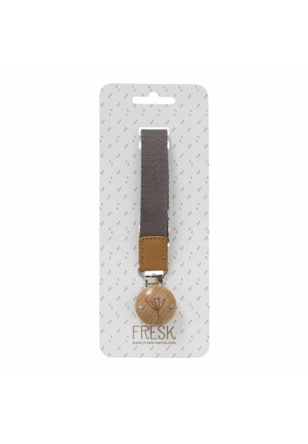 Látkový ľahučký klip s detailmi zo syntetickej kože, suchým zipsom a drevenou sponou. Nepostrádateľný, štýlový a šikovný klip na cumlík, ktorý perfektne zapadne do outfitu Vášho dieťatka. Dudlík už nikdy nespadne na podlahu.