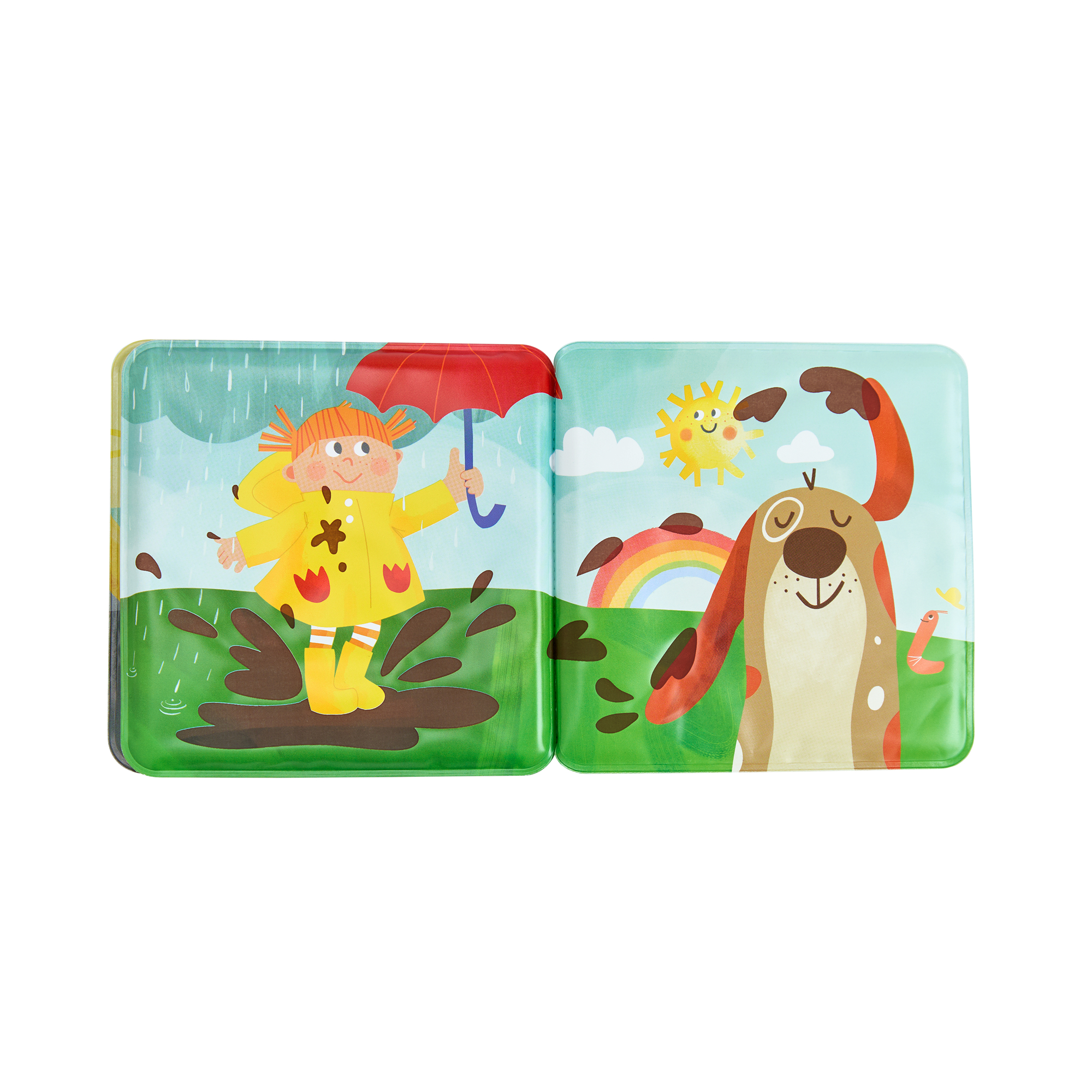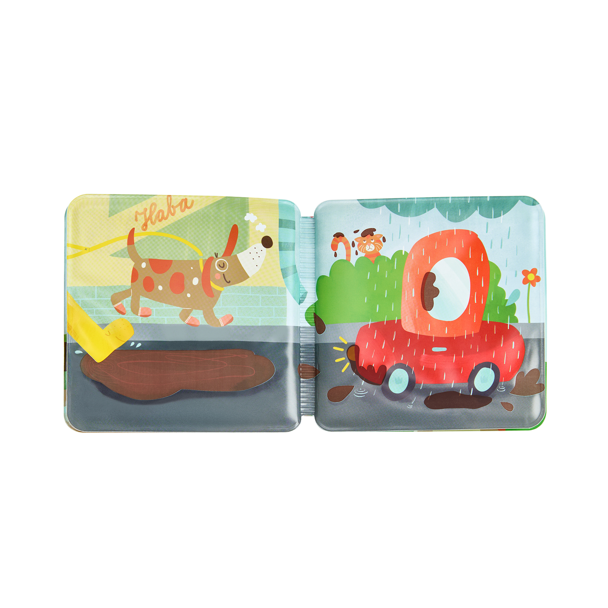 Ó drahý! Keď prší, zem je mokrá a veľmi bahnitá. Gumáky, auto, pes: všetko je špinavé! Žiadny problém – vo vani sa všetko opäť dokonale vyčistí.
