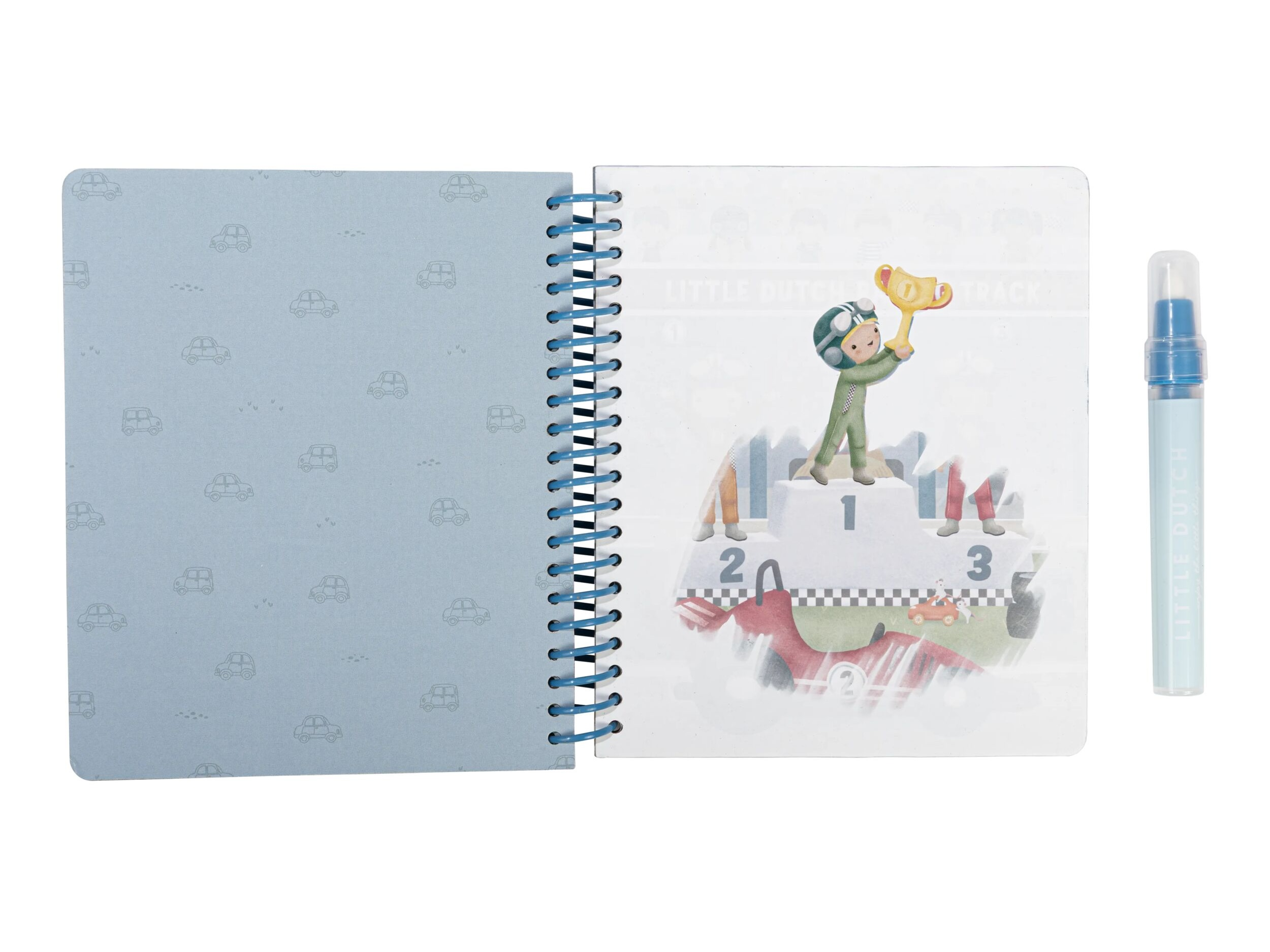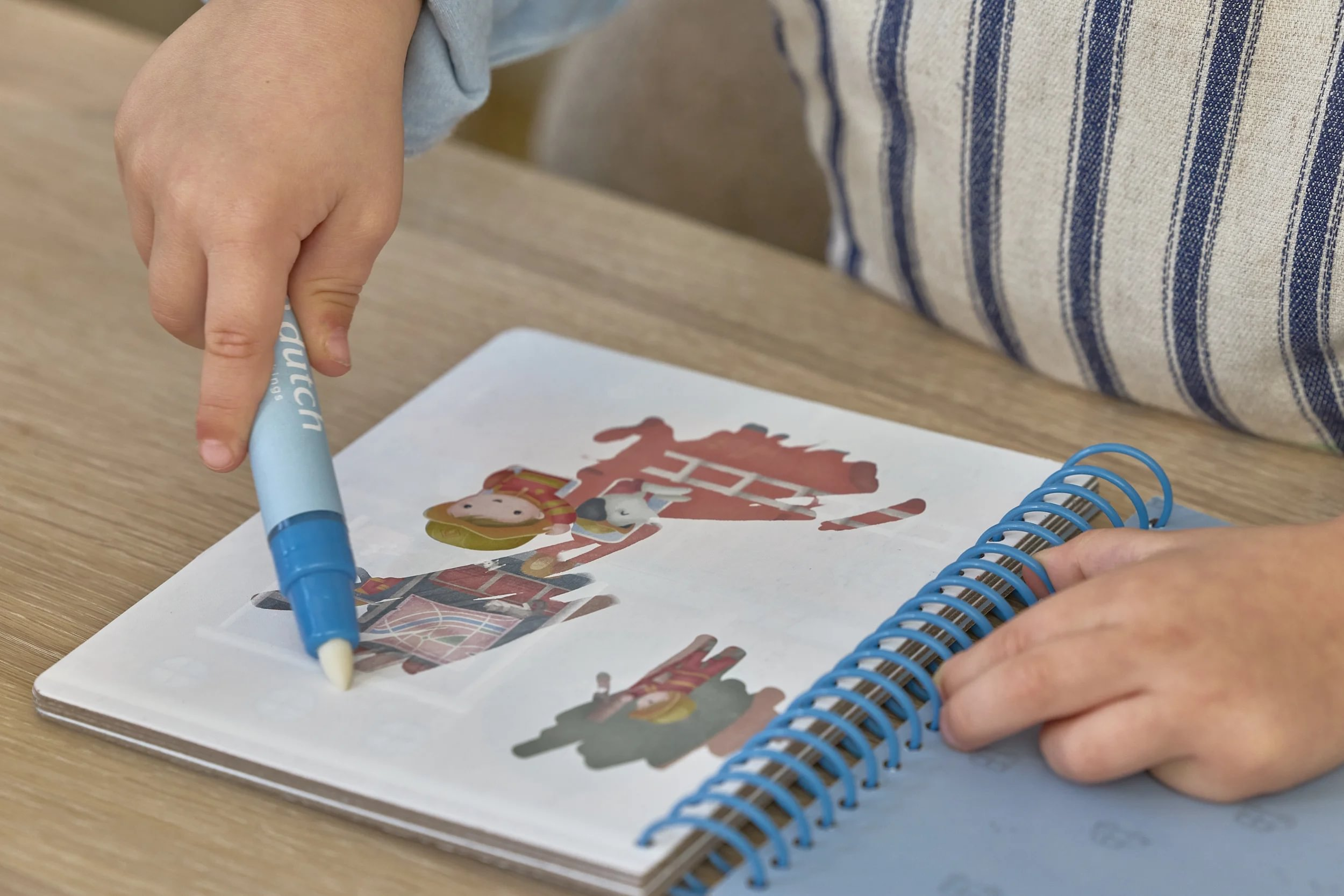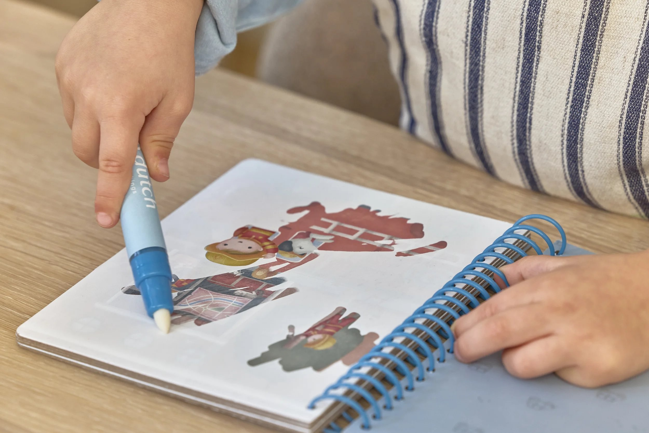 Knižka s piatimi ilustrovanými stránkami je opakovane použiteľná. Vďaka krúžkovej väzbe z pevného kartónu drží otvorená na pohodlné maľovanie.