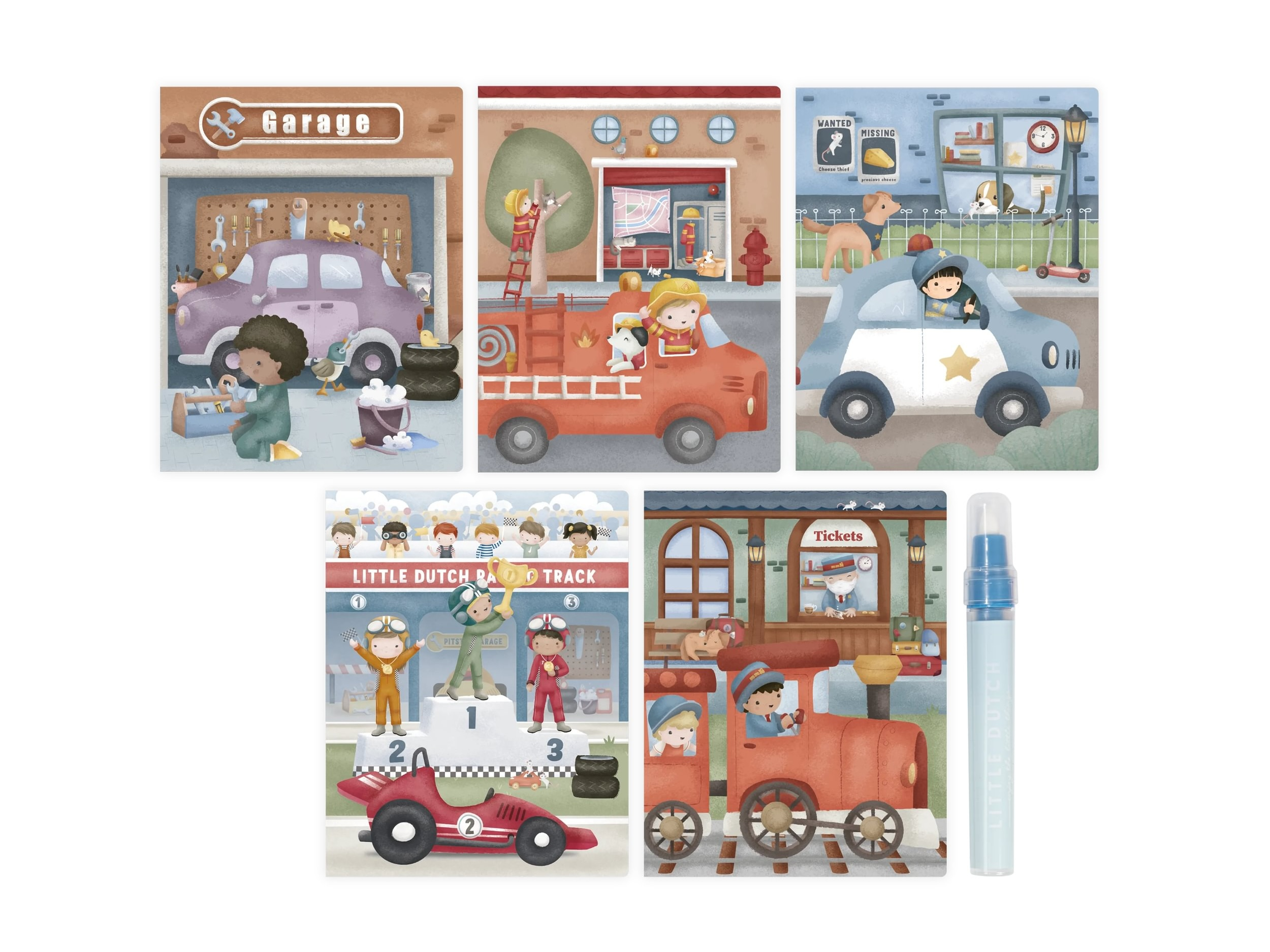 Kúzelná knižka skrýva na svojich stránkach krásne ilustrácie malého Jima, ktorý objavuje svet rôznych profesií a ich dopravných prostriedkov. Ilustrácie sa odkrývajú s pomocou vodného fixu, ktorý je súčasťou knižky. Stačí fixku naplniť vodou a malému umelcovi či umelkyni sa počas chvíľky postupne vynorí Jim a rôzne dopravné prostriedky.