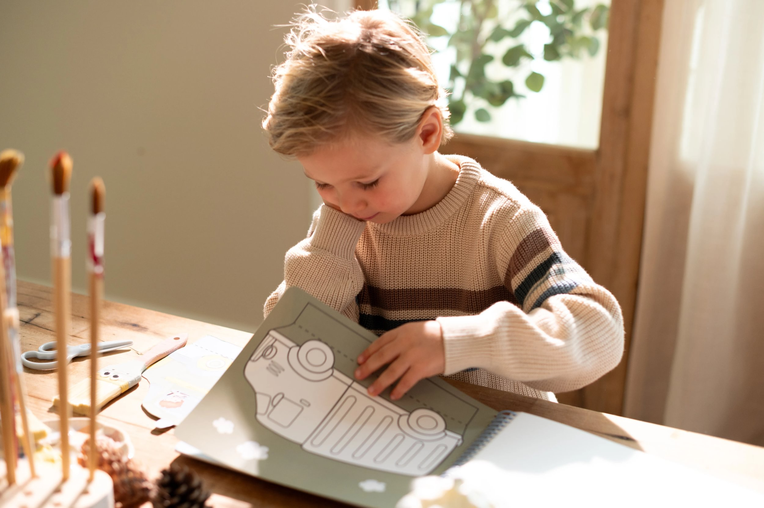 Originální kreativní kniha Little Dutch potěší všechny malé milovníky aut a tvoření. Obsahuje 20 barevných vystřihovacích vozidel, které si děti po vystřihnutí mohou dozdobit a vytvořit si tak vlastní sbírku aut, strojů a dopravních prostředků. Součástí balení jsou bezpečné dětské nůžky, díky nimž mohou děti masky vystřihovat samostatně a bez rizika.