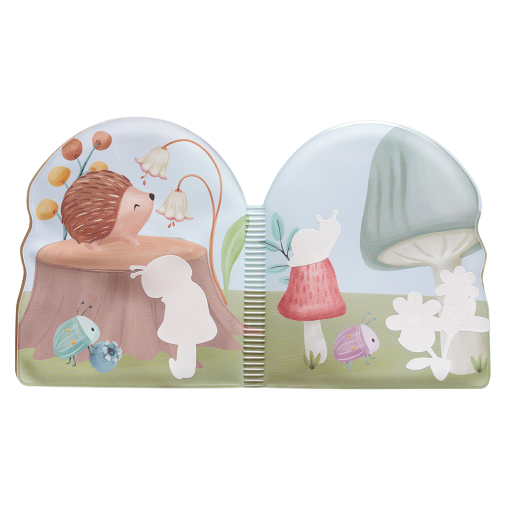 Omyvatelná knížka s krásnými ilustracemi ze života v lese je ideální pro prohlížení během koupele. Povídejte si se svým dítětem o jednotlivých zvířátkách, která v lese žijí, a užívejte si společné chvíle během koupání. Knížka plave na hladině a jedna její stránka po zmáčknutí píská.