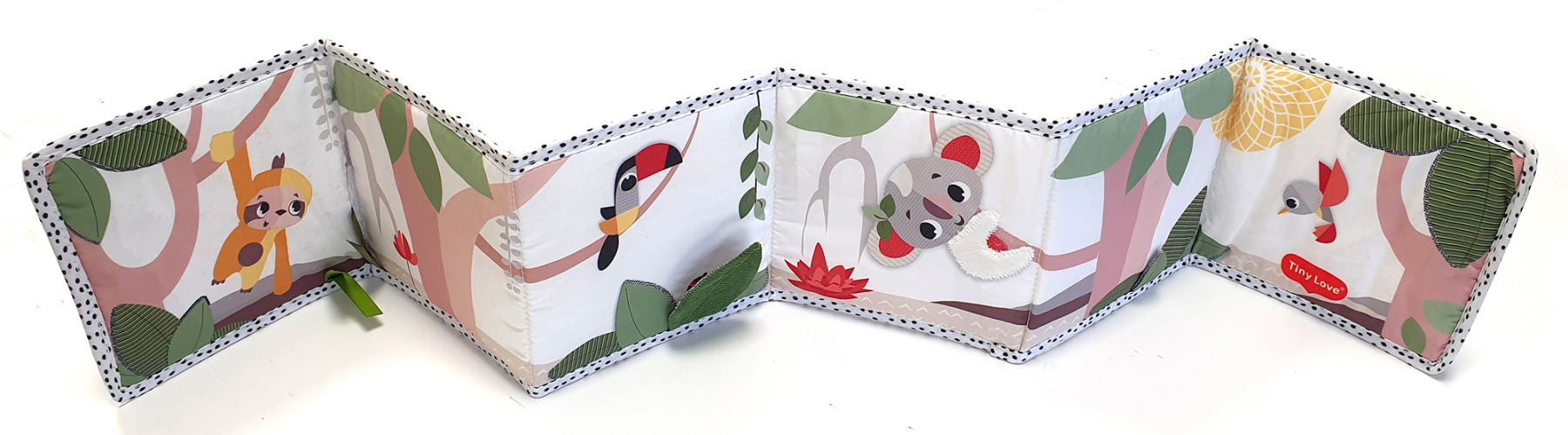 Oboustranná textilní knížka pro nejmenší Tiny Love je určena do kočárku, postýlky i na hrací deku.