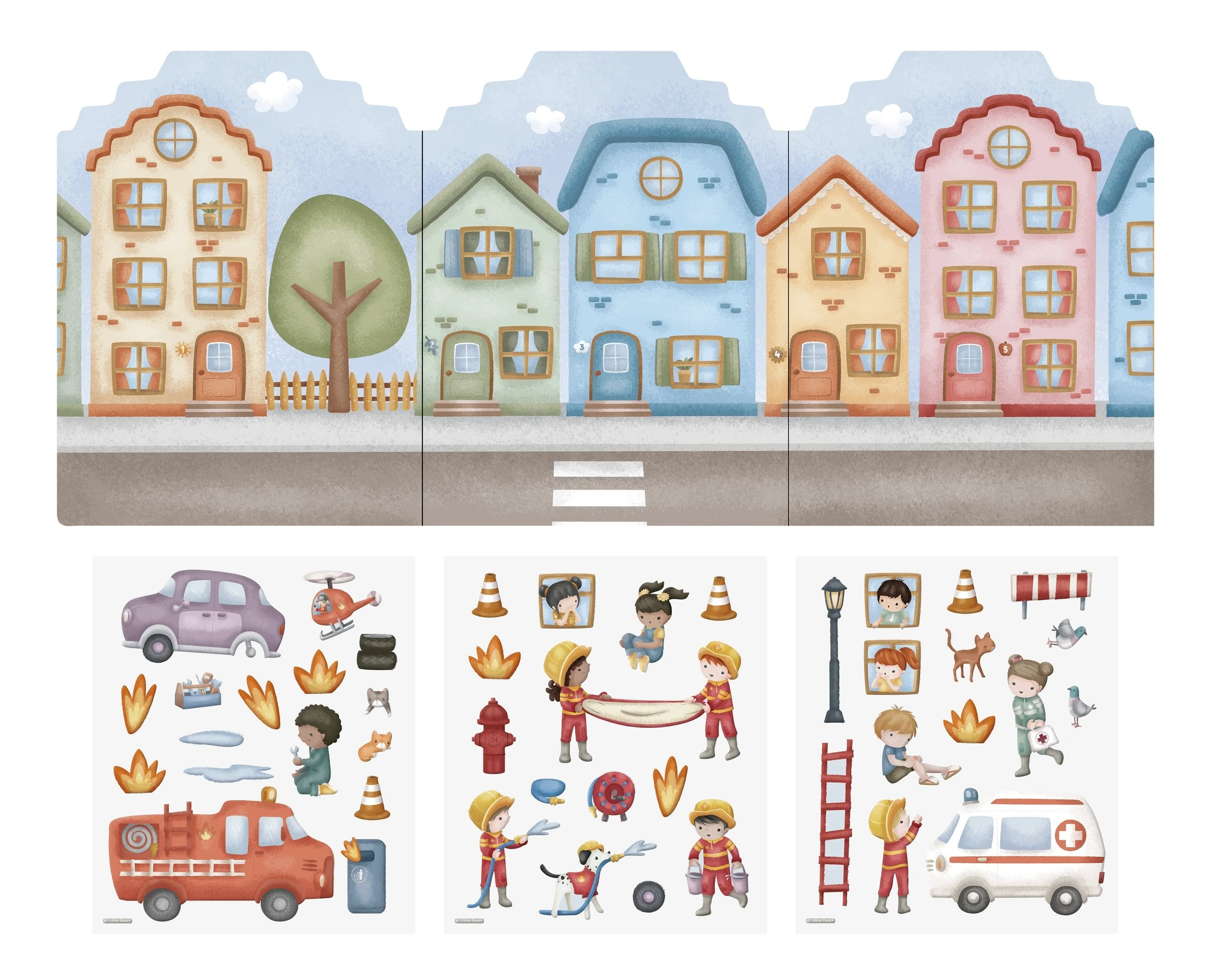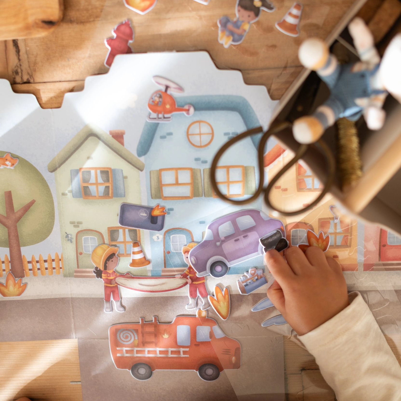 Podpořte dětskou fantazii s touto sadou opakovaně použitelných samolepek Little Dutch. Děti mohou znovu a znovu vyzdobit hasičskou stanici a ulice města více než čtyřiceti veselými 3D samolepkami a pokaždé vytvořit jiný příběh.