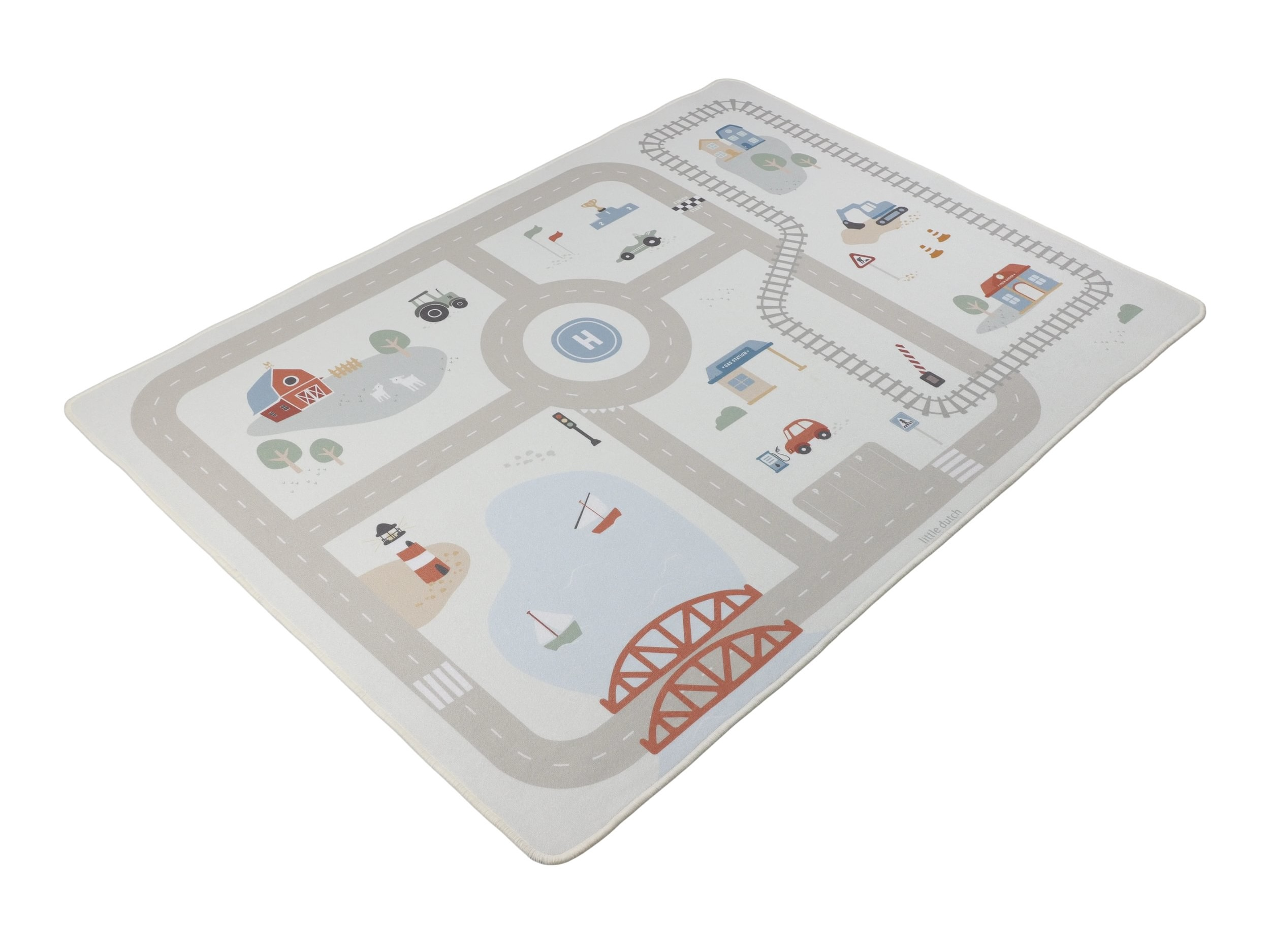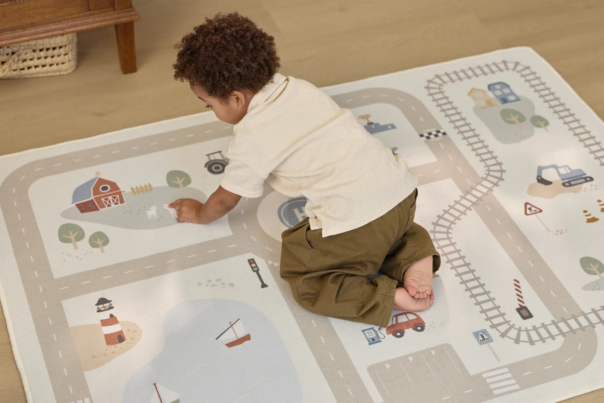 Dětský koberec Little Dutch promění podlahu v dětském pokoji v živý svět plný silnic, zatáček a křižovatek, kde se příběhy tvoří samy. Děti mohou parkovat auta do garáže, projíždět městem nebo se vydat na cestu vlakem – design koberce je přirozeně vede a podporuje fantazii i soustředěnou hru. Koberec bude skvělým doplňkem při hraní s autíčky, vláčky, stavebnicemi nebo dalšími hračkami.