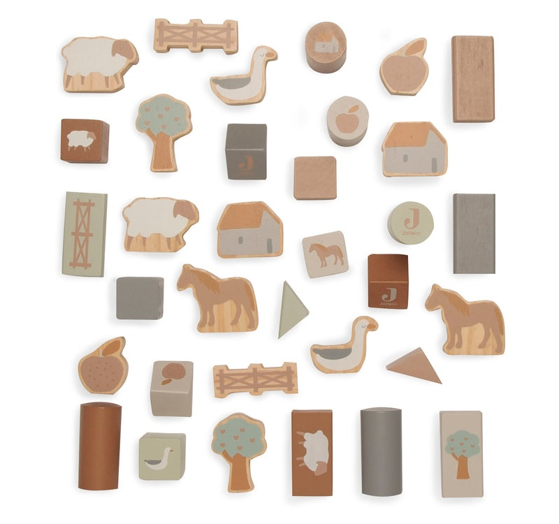 Dřevěné kostky jsou doslova nezbytností do každého dětského pokoje. Tuba obsahuje 34 dřevěných kostek různých barev a tvarů s krásným potiskem motivů ze života na farmě. Popusťte uzdu fantazii a vytvářejte spolu s vaším dítětem kreativní stavby. Když hra skončí, jednoduše kostky uložíte zpět do tuby!