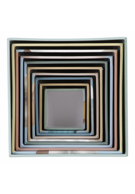 Nejmenší kostka má 5 cm a největší má 14 cm. Po skončení hraní kostky snadno uložíte složením do sebe.