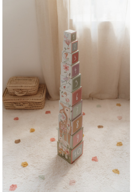 Farebné kartónové kocky s krásnymi ilustráciami motivov zo života na záhrade. Nechajte vaše dieťa kocky skladať na seba do vysokej veže alebo vedľa seba podľa veľkosti. V staršom veku sa dieťa s pomocou očíslovaných kociek môže hravým spôsobom učiť počítať aj rozpoznávať číslice.