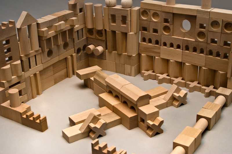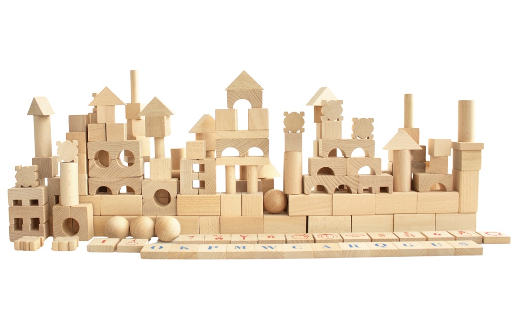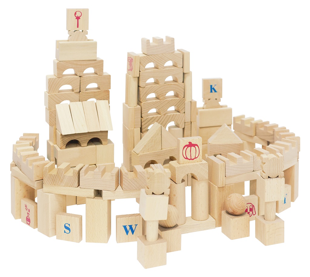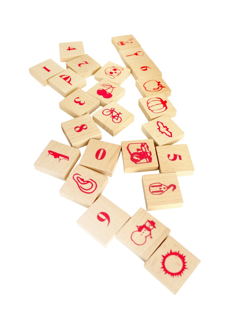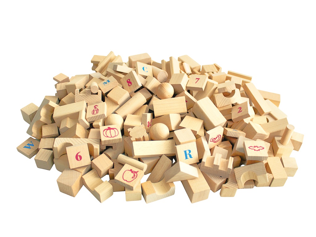 Rozmery: kocka obdĺžniková 6x3x3 cm, kocka znak 3x3x1,2 cm Rozmery balenia: 39x26,5x14 cm Vek: 1+ Materiál: drevo Počet dielov: 220 ks