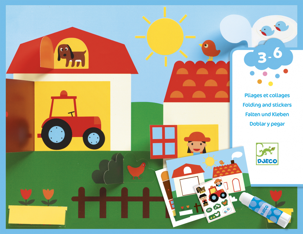Obsah: 4 obrázky na dotvorenie, 4x hárok s okienkami, 4x hárok so samolepkami, lepidlo