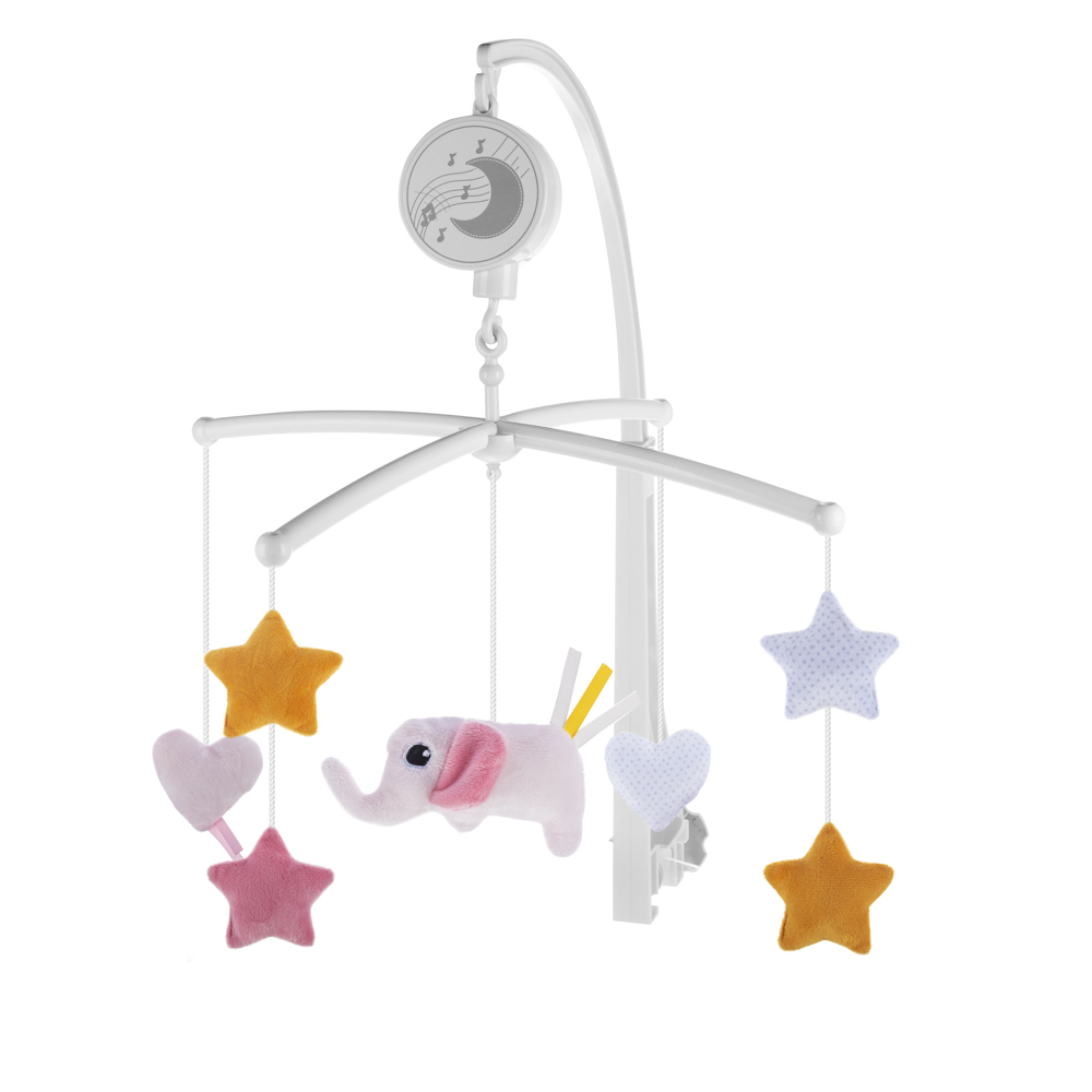 Rozpohybované plyšové hračky v jemných farbách prírodných motívov, ktorým dominuje roztomilé zvieratko, sprevádza niekoľko príjemne sladkých melódií. To všetko u dieťatka podporuje sluchové, motorické a vizuálne vnemy. V jeho postieľke sa tak navodí príjemná atmosféra, ktorá dieťatko ľahko upokojí a jemne zavedie až do ríše snov.