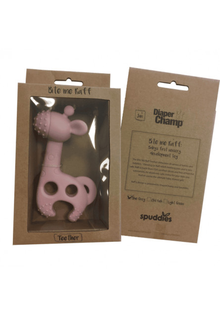 Kousátko s různorodými texturami ve tvaru žirafy je vyrobené z jemného silikonu příjemného na dotek. Kousátko uleví citlivým dětským dásním při prořezávání prvních zoubků. Jeho tvar umožňuje snadné držení malými dětskými ručičkami.