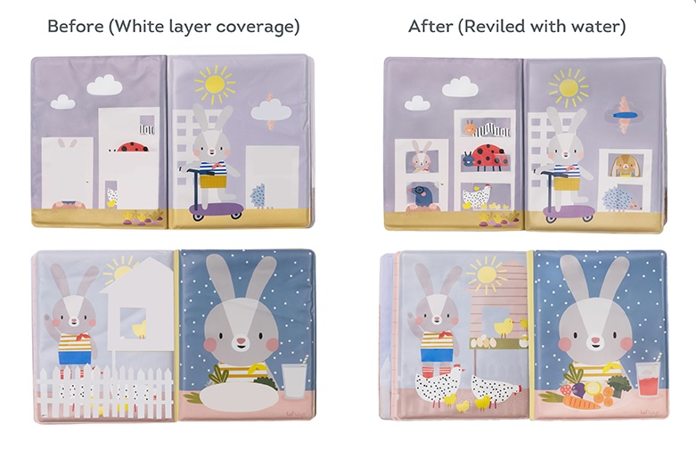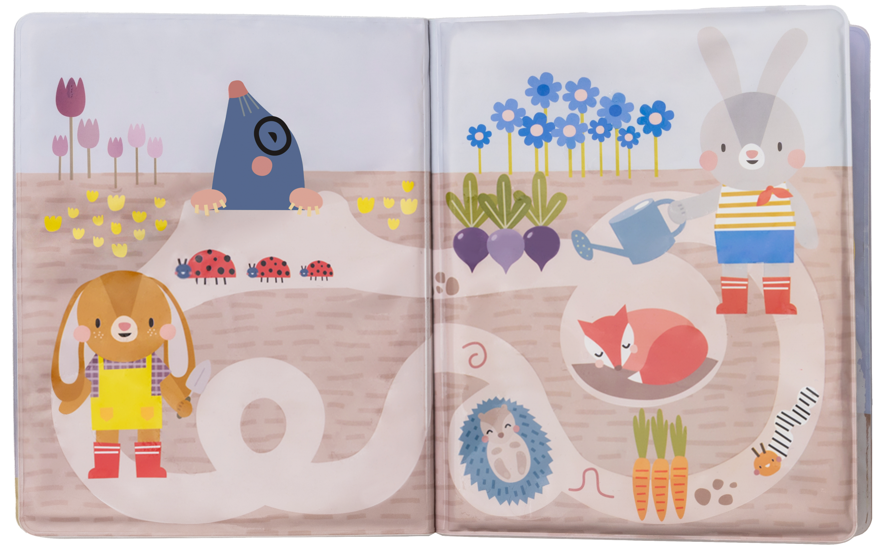 Knížka je vyrobená z odolného, voděodolného materiálu a je zcela netoxická – bez BPA, olova, ftalátů i rtuti.