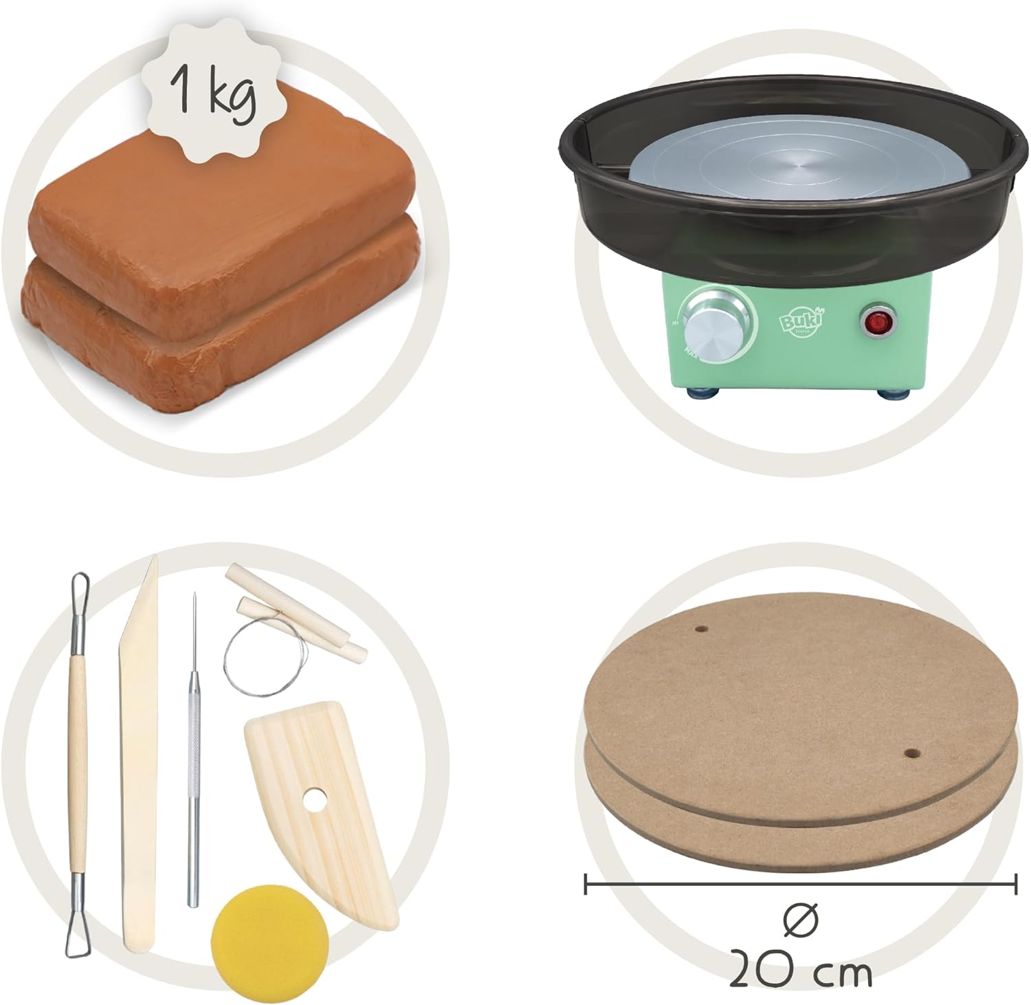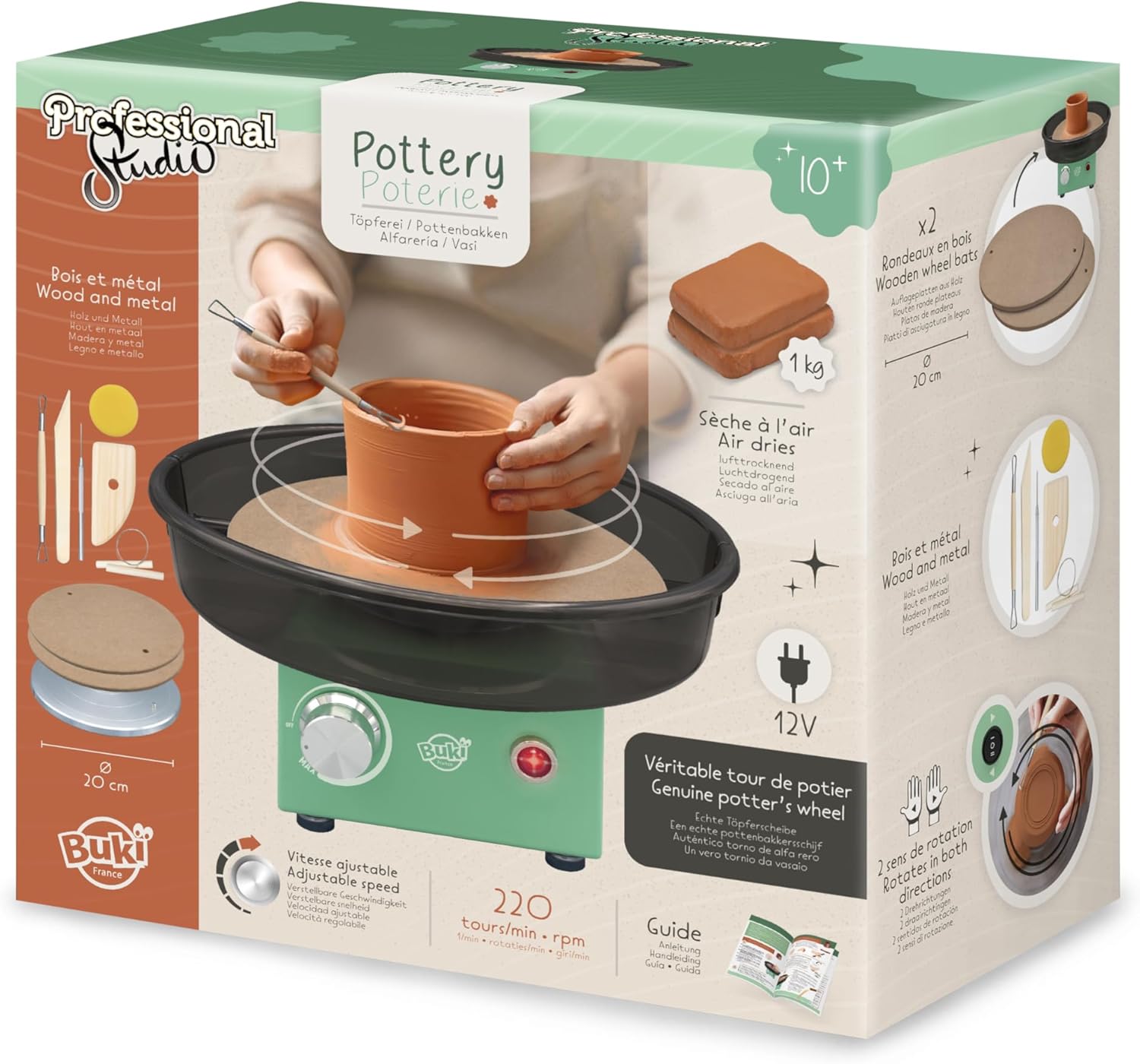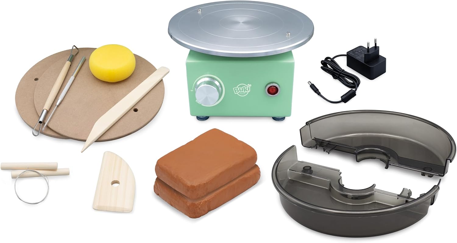 Objavte čaro keramiky so skutočným hrnčiarskym kruhom od BUKI! Tento kvalitný set umožní deťom aj dospelým spoznať základné hrnčiarske techniky a vytvoriť vlastné originálne výrobky.