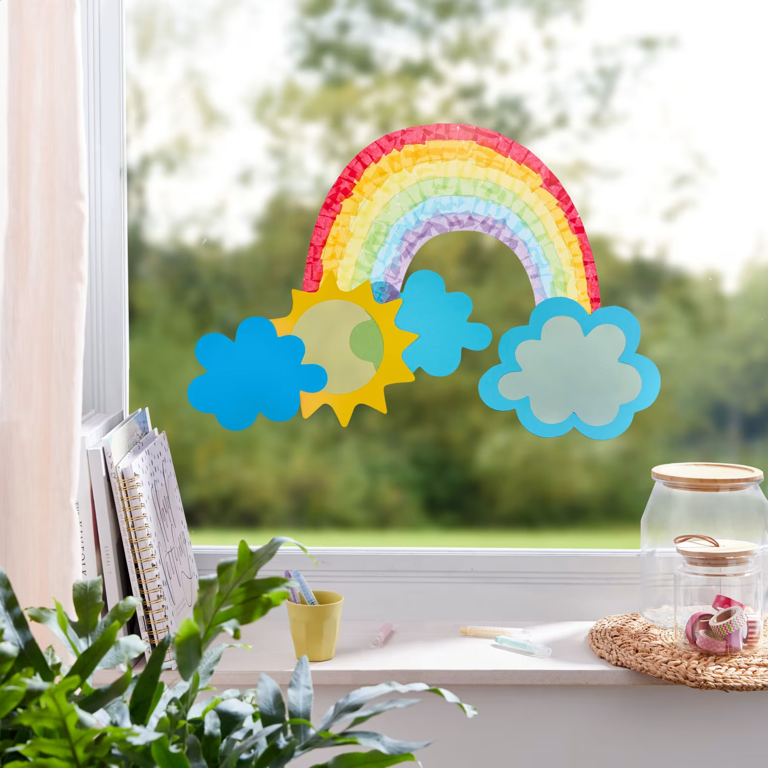 Dúha – kreatívna sada pre malých tvorcov umožní deťom vytvoriť jeden veľký dúhový okenný obrázok, ktorý bude krášliť ich izbičku farebnými odleskami svetla.