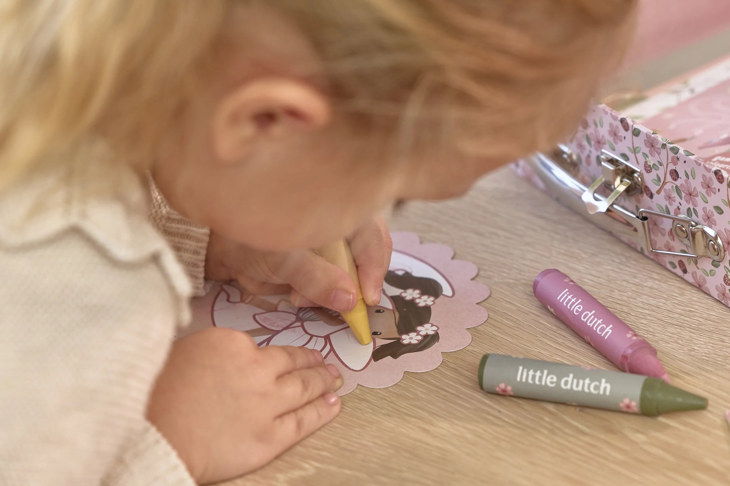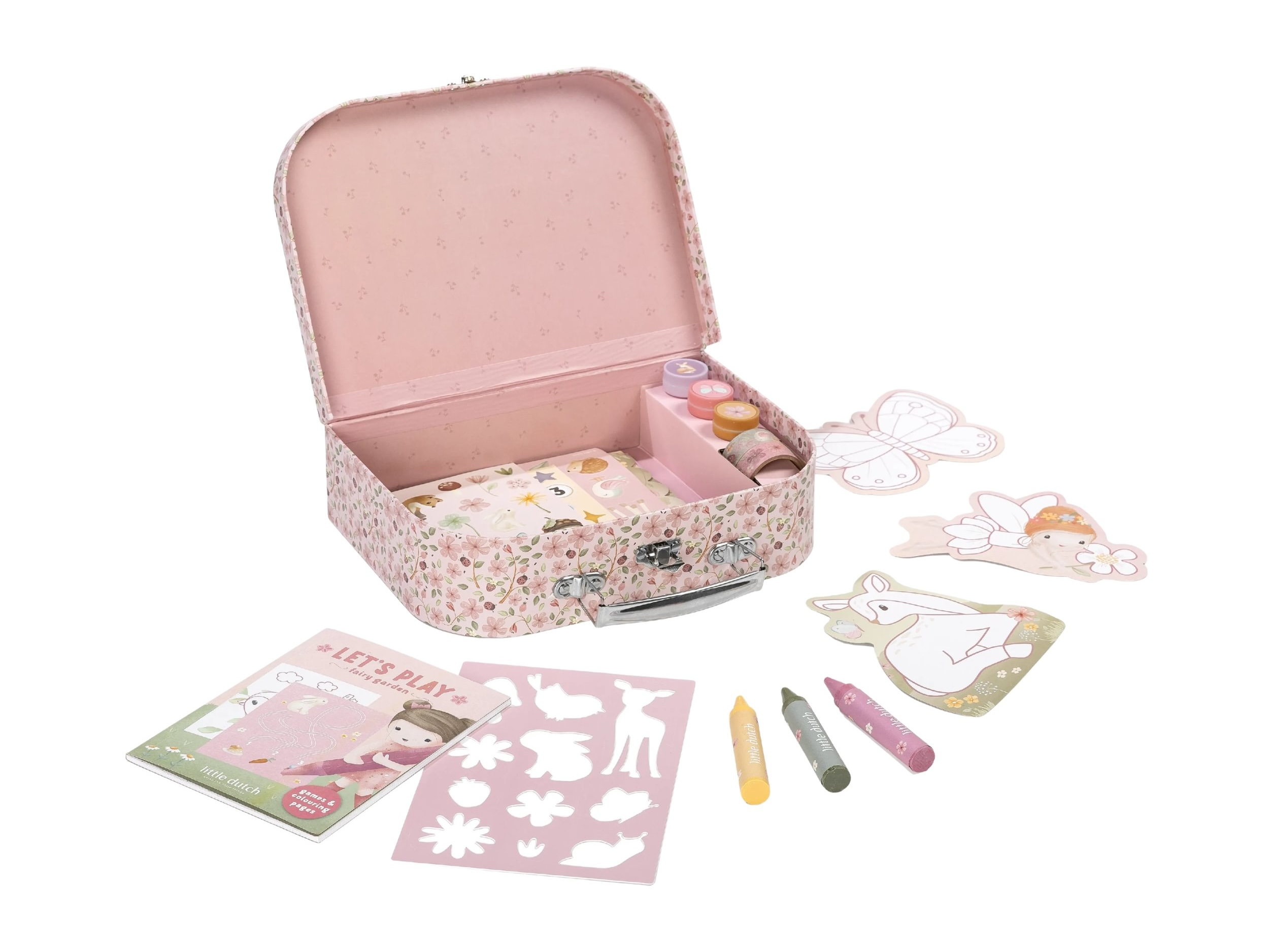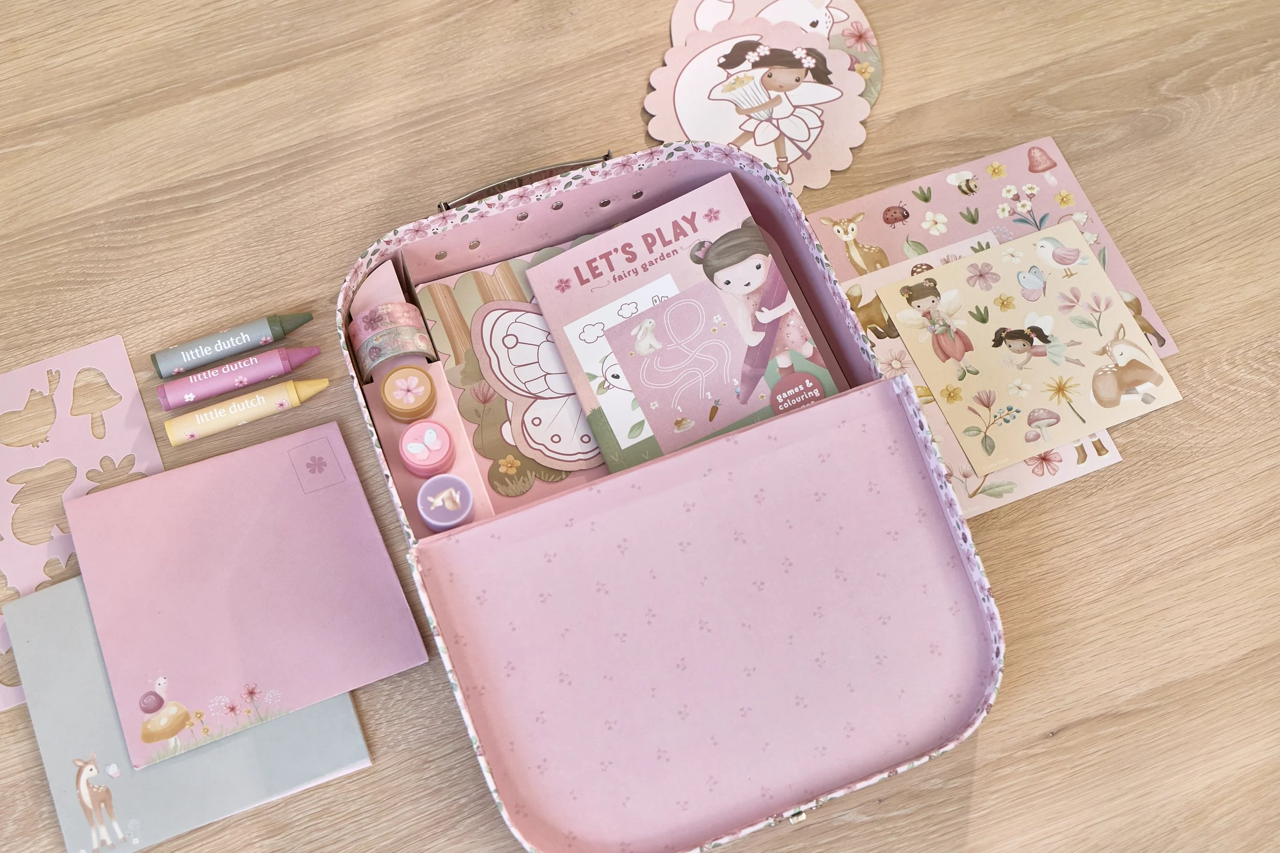 Veľká kreatívna súprava obsahuje potreby pre rôzne druhy výtvarného tvorenia vrátane pasteliek, samolepiek, pečiatok a pod. Motívy zo života rozprávkovej víly, zvieratká a kvety, to všetko nabáda k vymýšľaniu príbehov a kreatívnemu tvoreniu. Všetko je zabalené v krásnom kufríku, do ktorého všetko po skončení hry ľahko upracete.