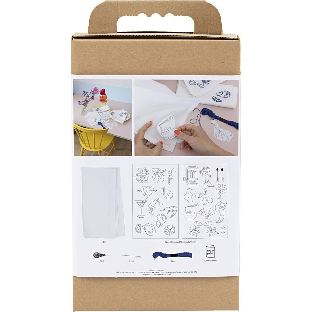 Originální kreativní sada pro vyšívání textilních ubrousků. Tato sada vám umožní vyšít si vlastní látkové ubrousky a vytvořit osobité prostírání s elegantním detailem. V balení najdete vše potřebné pro čtyři ubrousky včetně návodu. Práce je jednodušší, než se zdá: vyšívací samolepky umístíte na ubrousek, vyšijete motiv podle šablony a po dokončení se šablony ve vodě rozpustí. Výsledkem jsou čtyři jedinečné ubrousky, které dodají stolování osobní styl a udělají dojem na hosty.