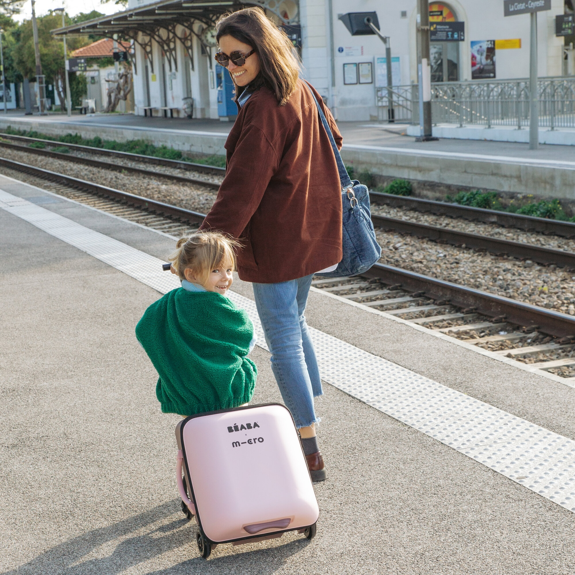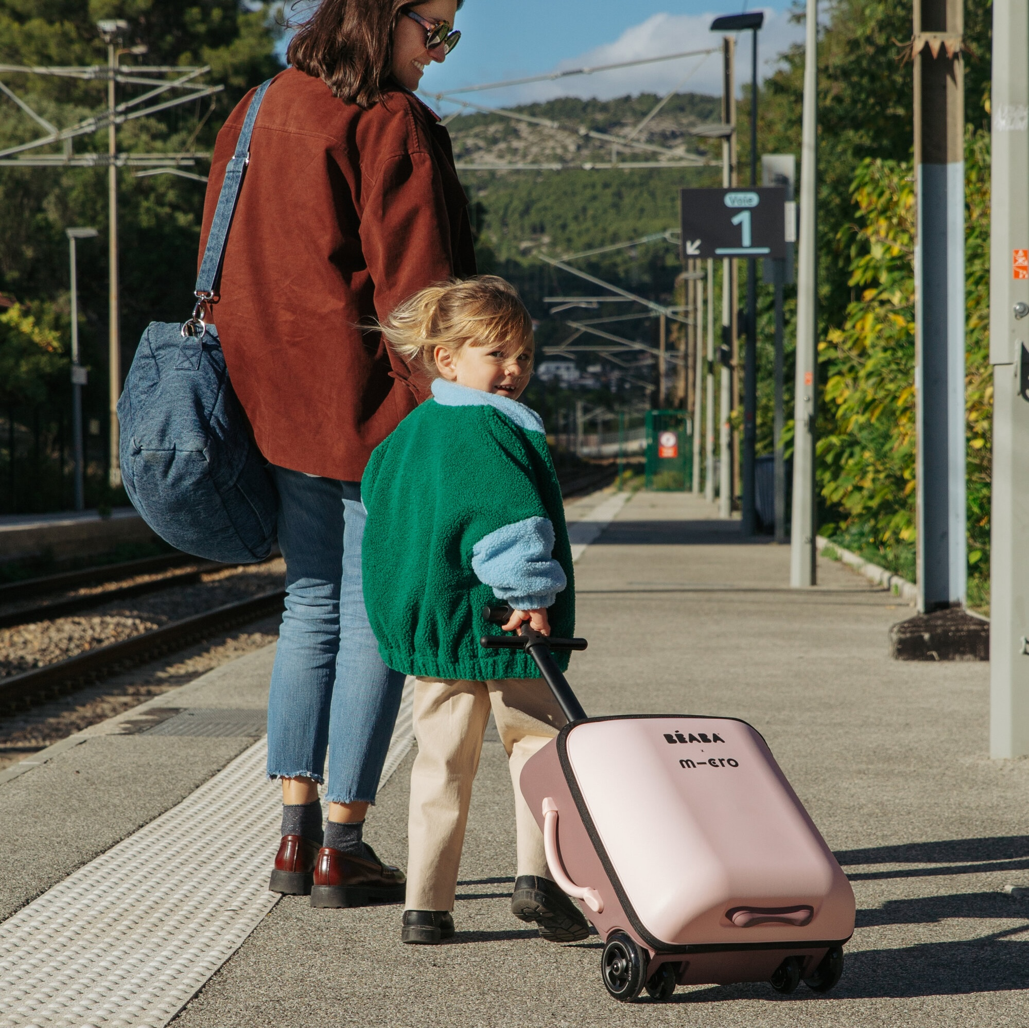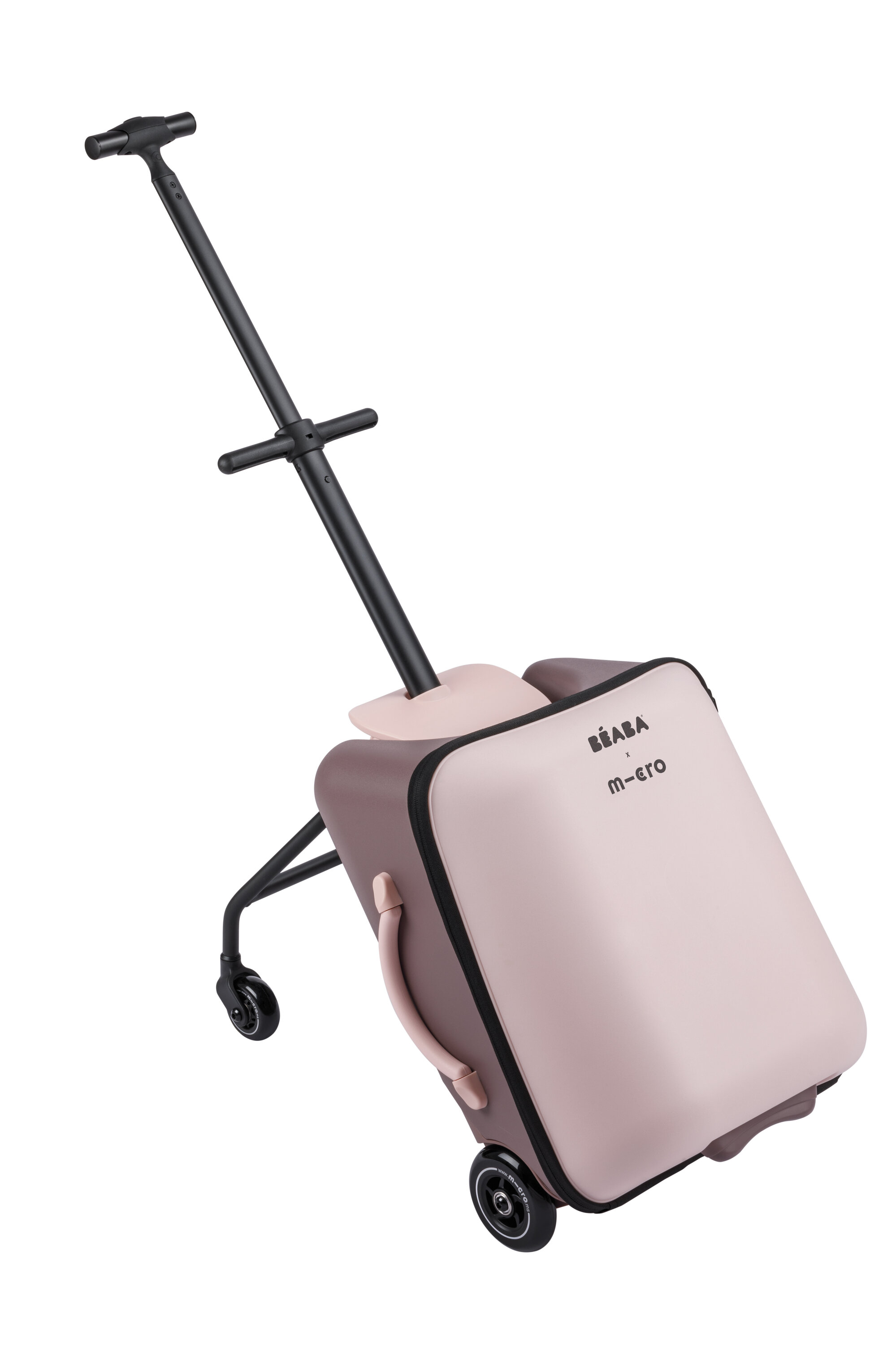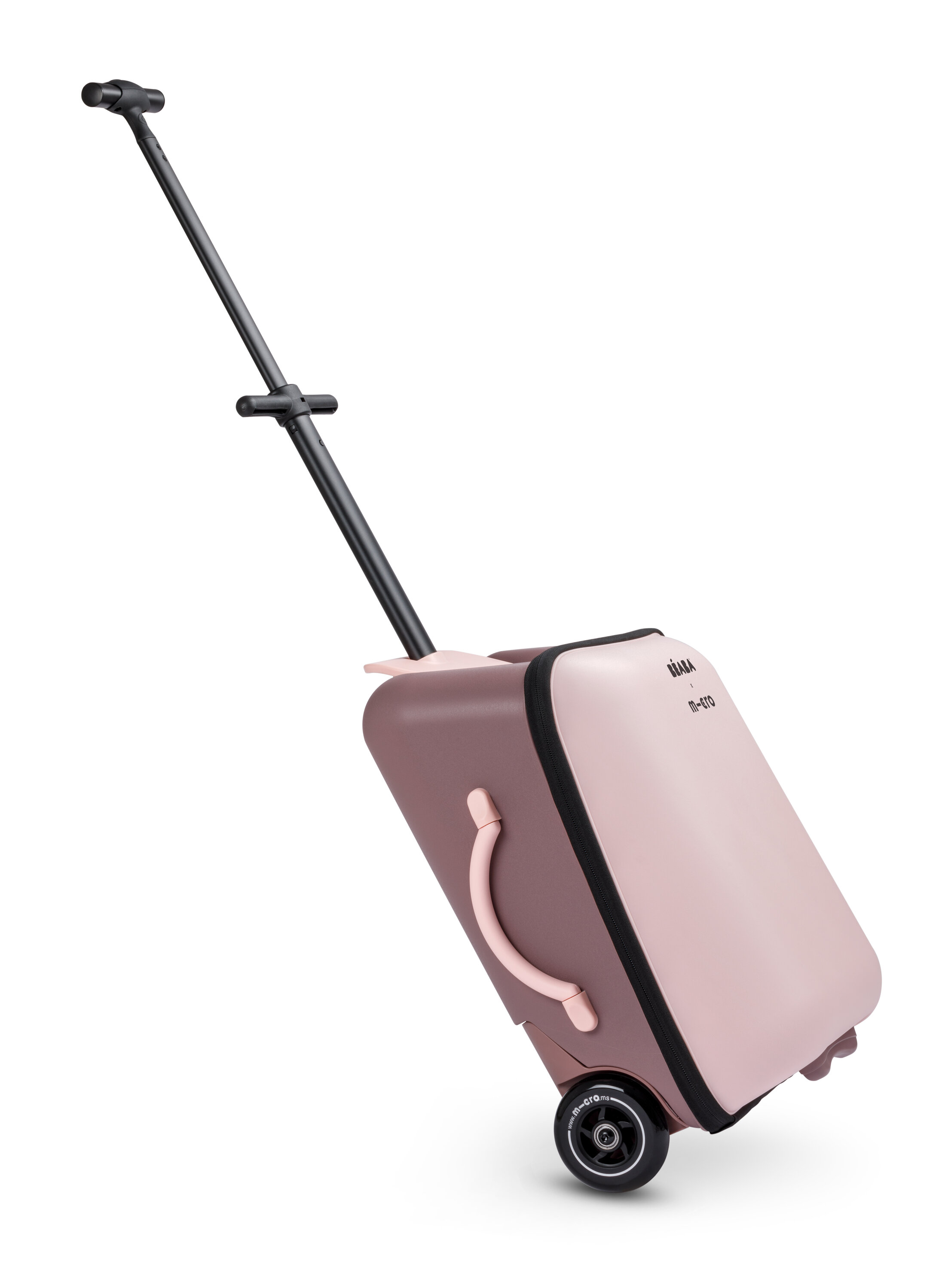 Unikátní kabinové zavazadlo usnadní a zrychlí vaše cestování s malým dítětem na letišti, na nádraží apod. Kufr je vybaven sedátkem, na kterém můžete vozit sedící dítě. Maximální stabilitu při jízdě se sedícím dítětem poskytují vyklápěcí opěrné nohy s kolečky. Vytahovací držadlo a přední kolečka otočná o 360° nabízí pohodlné ovládání kufru.