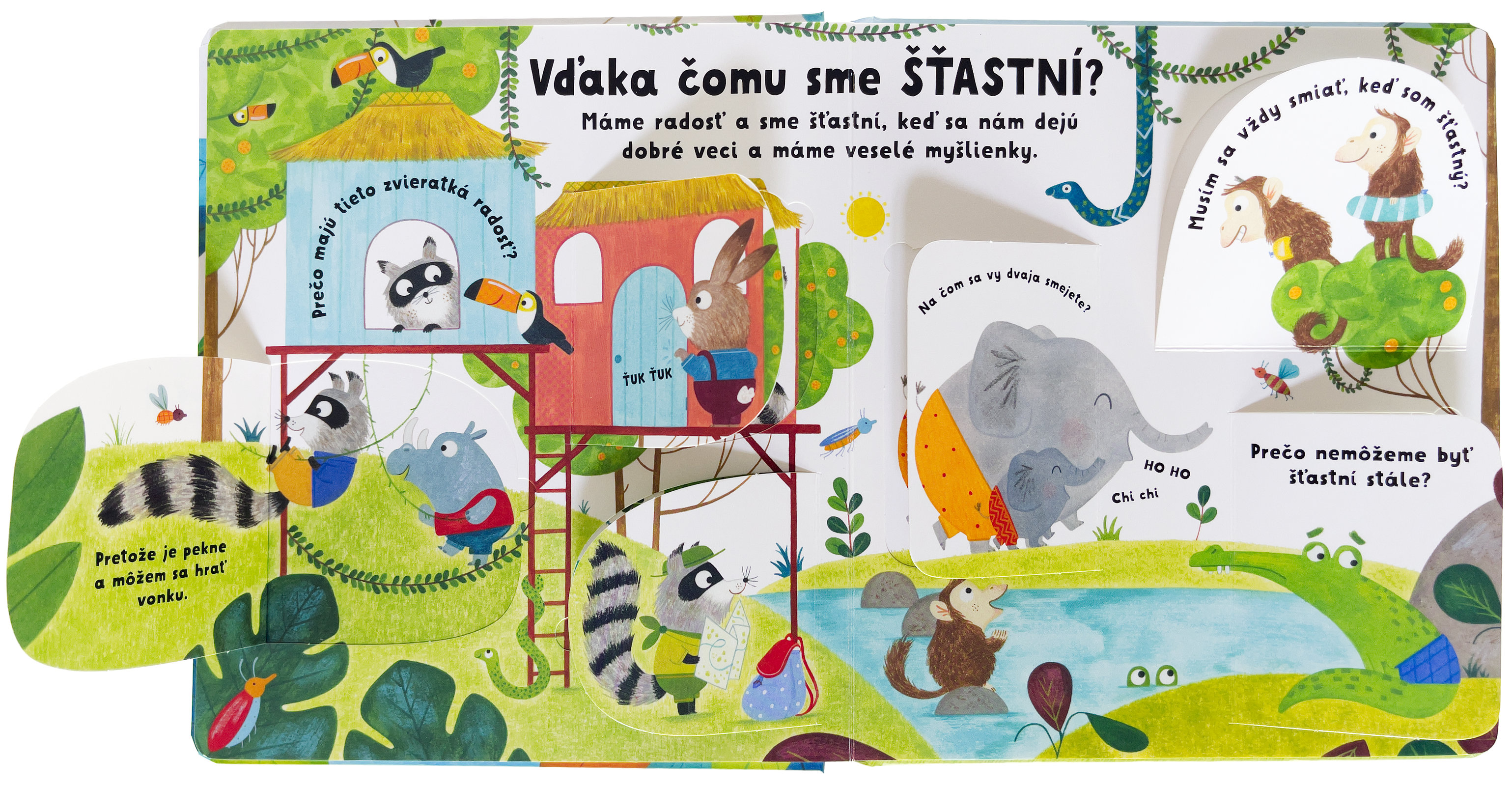 Pocity sú to, čo cítime vnútri tela a v mozgu, keď sa nám dejú dobré alebo zlé veci. Deti sa odjakživa pýtajú, či sú pocity "naše", alebo či nám tak úplne nepatria, keď ako vo vlnách prichádzajú a zase odchádzajú. Inak povedané: čo to pocity sú a kde sa berú? Na tieto otázky nemajú dospelí vždy rýchlu a jasnú odpoveď. V tejto milo ilustrovanej knižke nájdu deti aj ich rodičia odpovede na najčastejšie otázky o pocitoch. Prečo sme šťastní? Prečo sa hneváme? Z čoho máme strach? Je v poriadku chcieť byť chvíľu sám? Ako sa vyrovnať s nežiaducimi pocitmi? Odpovede pod odklápacími okienkami a sympatické zvieratá v ilustráciách deťom pomôžu lepšie pochopiť komplikovaný svet emócií.