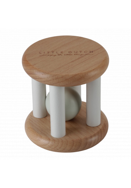 Roztomilé dřevěné chrastítko s cinkající kuličkou v kleci dokonale padne do každé dětské ručičky. Hračka podporuje koordinaci rukou a očí.