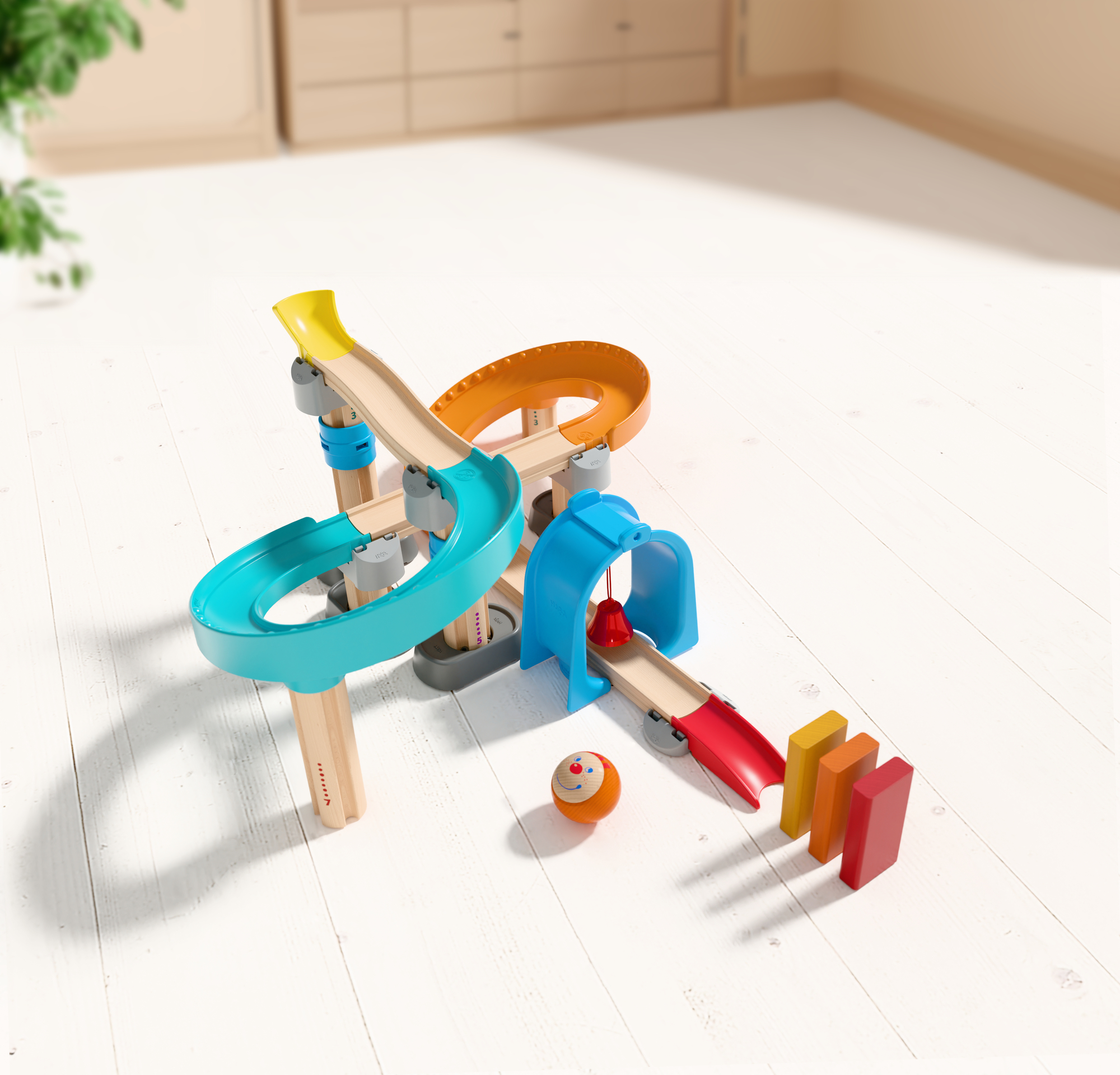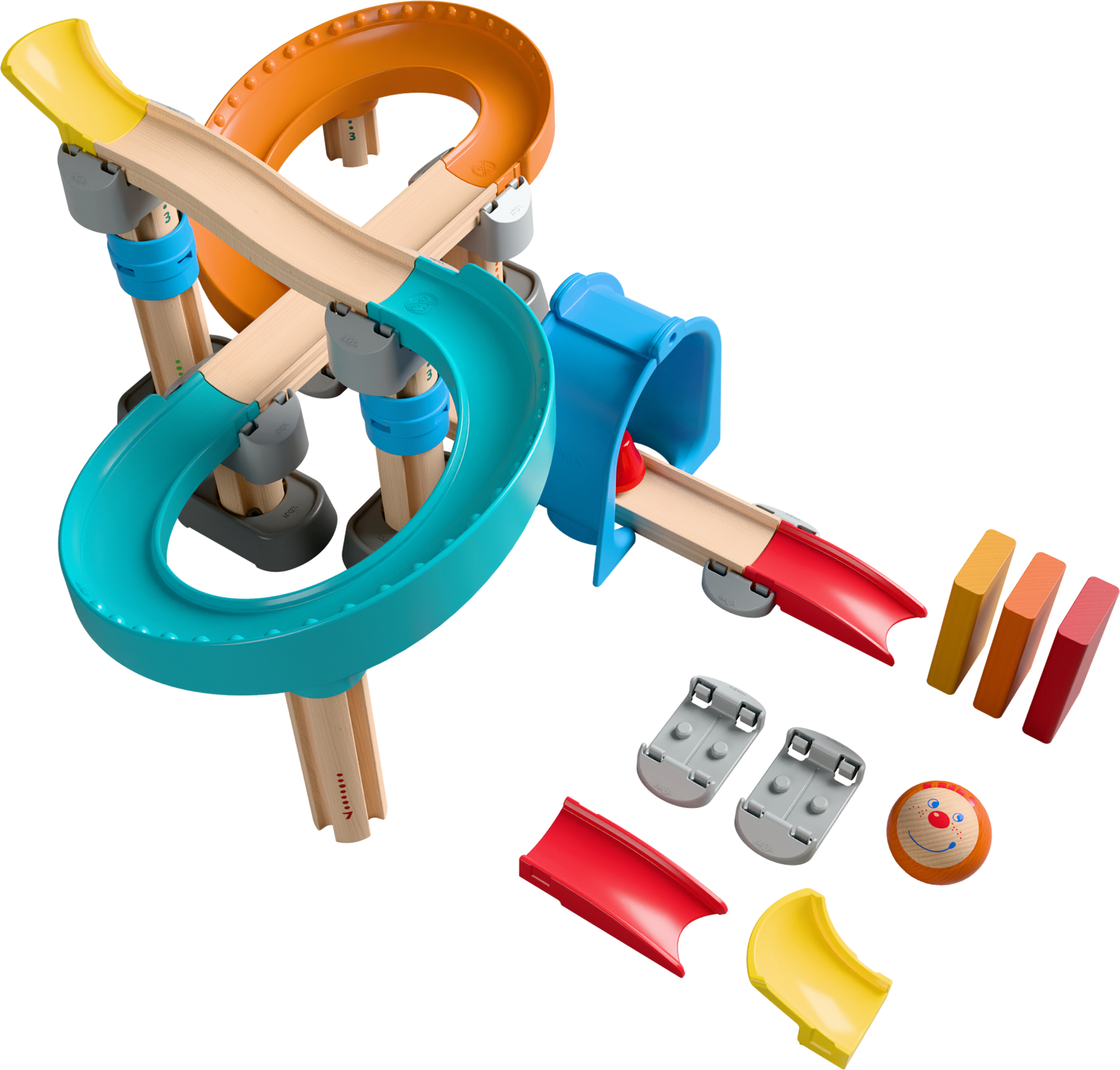 Zatiaľ čo tie najmenšie deti rady objavujú loptu a s úžasom ju sledujú, ako sa kotúľa, tie staršie chcú pomôcť vybrať dieliky a postaviť ju. Takto sa z jednej rovnej dráhy môže postupne vyvinúť zložitá dráha – vždy prispôsobená príslušnému vývojovému štádiu dieťaťa. Rôzne prvky poskytujú extra zábavu.
