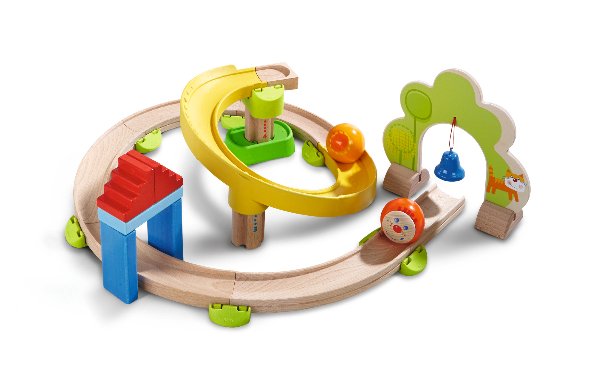 Špirálová dráha guľôčkovej dráhy Kullerbü od Haba robí česť svojmu menu! Hneď niekoľko zákrut sa postará o extra porciu špirálovej zábavy. Stačí malý šťuchanec a guľôčka Paul sa vrhne do strmej zákruty, aby s veľkým Schwungom prefrčala cez bránu a na konci špirálovej dráhy prešla cez bránu so zvončekom. Veselé „cink-cink“ ohlási koniec radostnej jazdy. A kto chce pokračovať, môže špirálovú dráhu ľubovoľne rozšíriť o akúkoľvek inú guľôčkovú dráhu Kullerbü. Vďaka šikovnému klik systému zostane celá dráha pevne stáť a žiadny diel sa neposunie. Tak hor sa do ďalšieho kola špirálovej jazdy! Pre všetkých, ktorí chcú vedieť o Kullerbü ešte viac, sú pripravené rozprávky na čítanie, kreatívne nápady, informácie pre rodičov a hry v tematickom svete Kullerbü.
