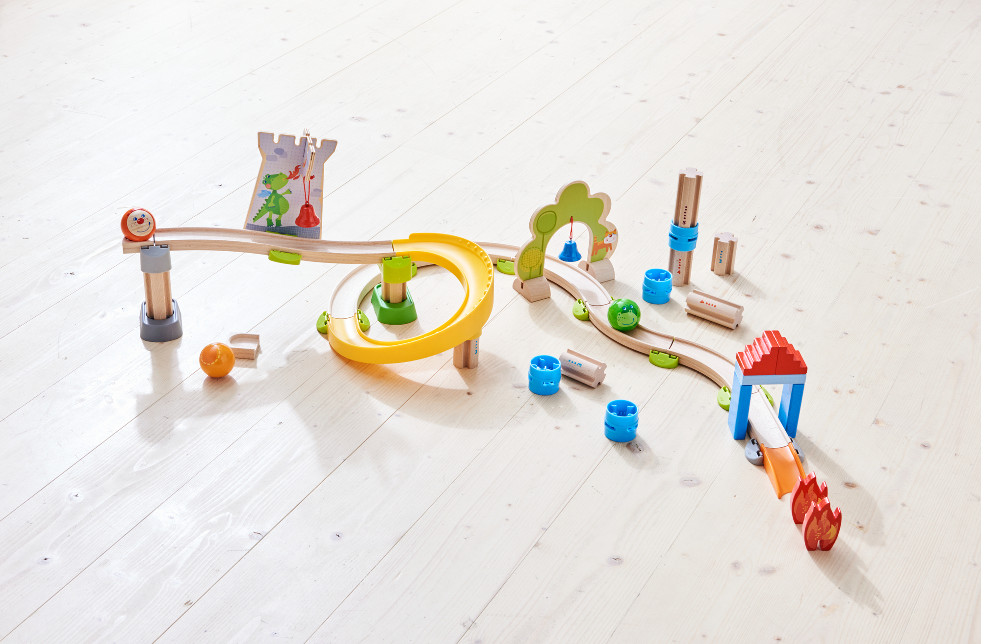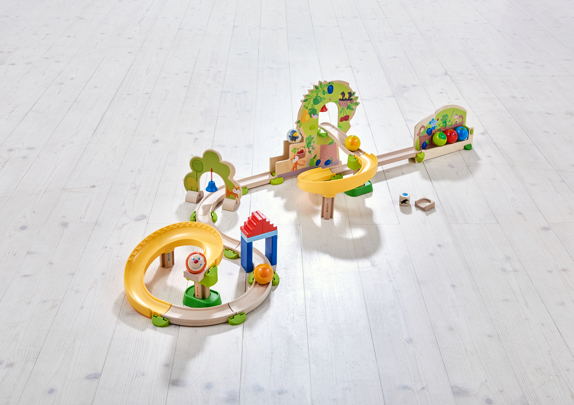 Špirálová dráha guľôčkovej dráhy Kullerbü od Haba robí česť svojmu menu! Hneď niekoľko zákrut sa pos...zobrazit více