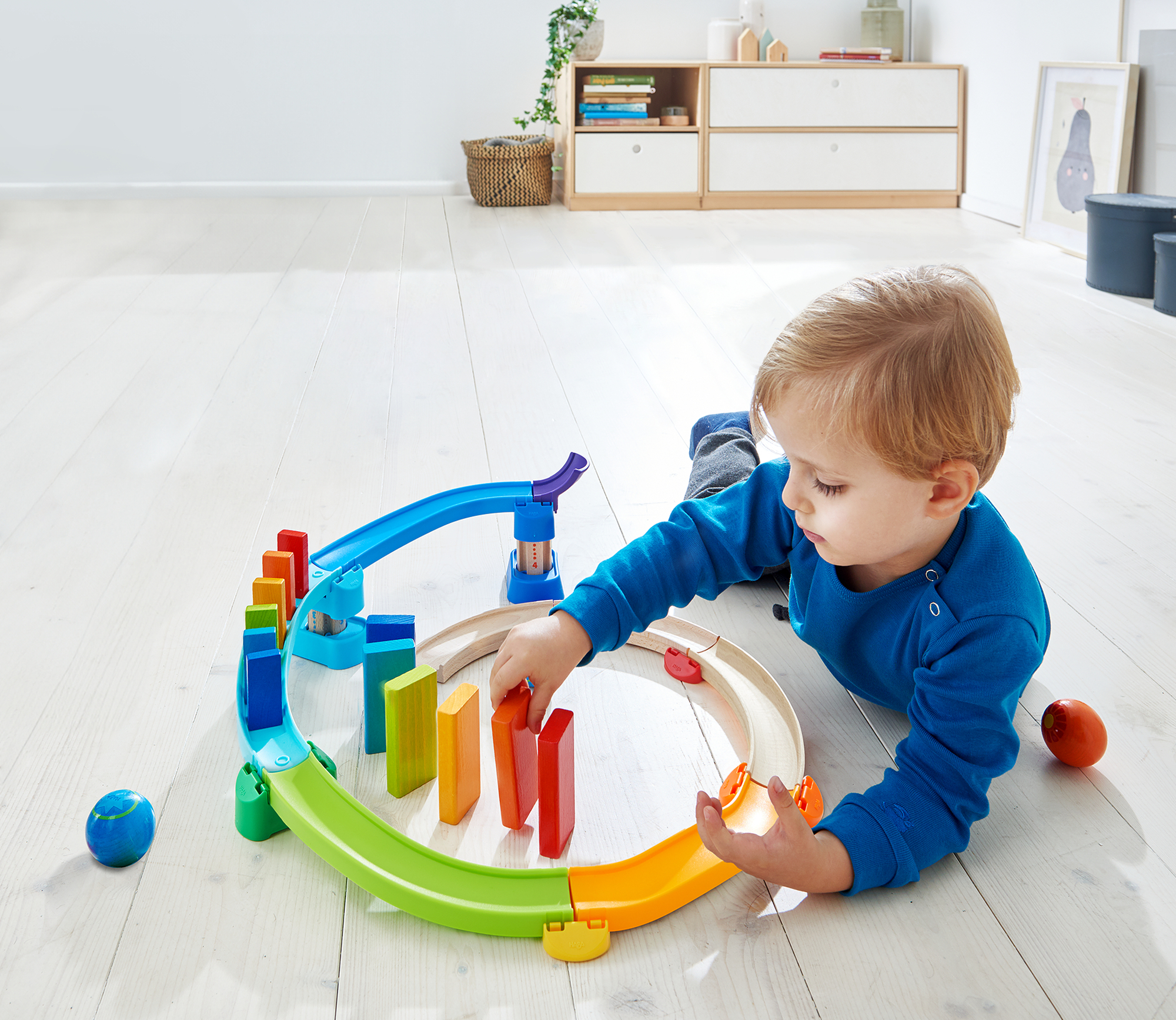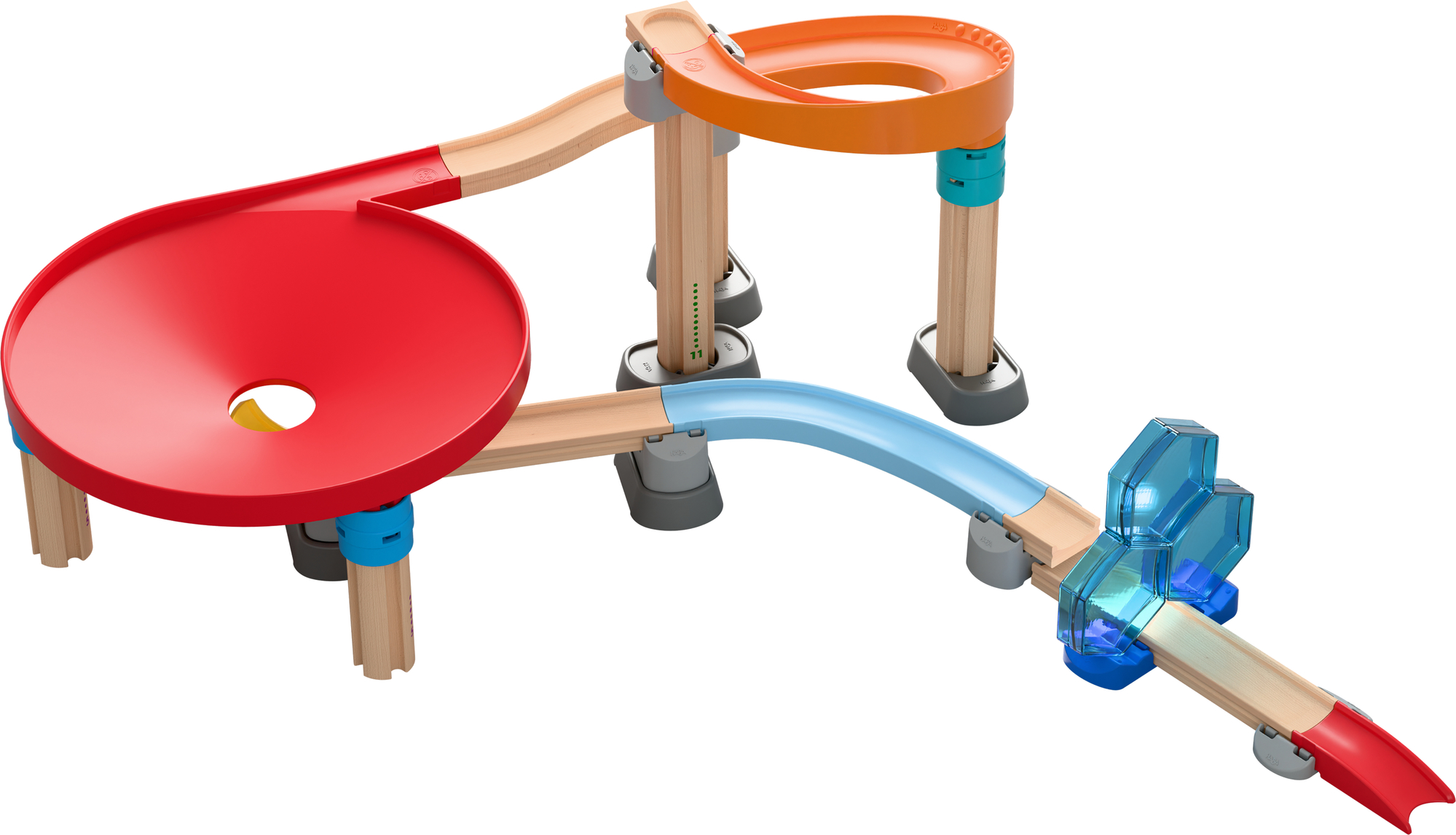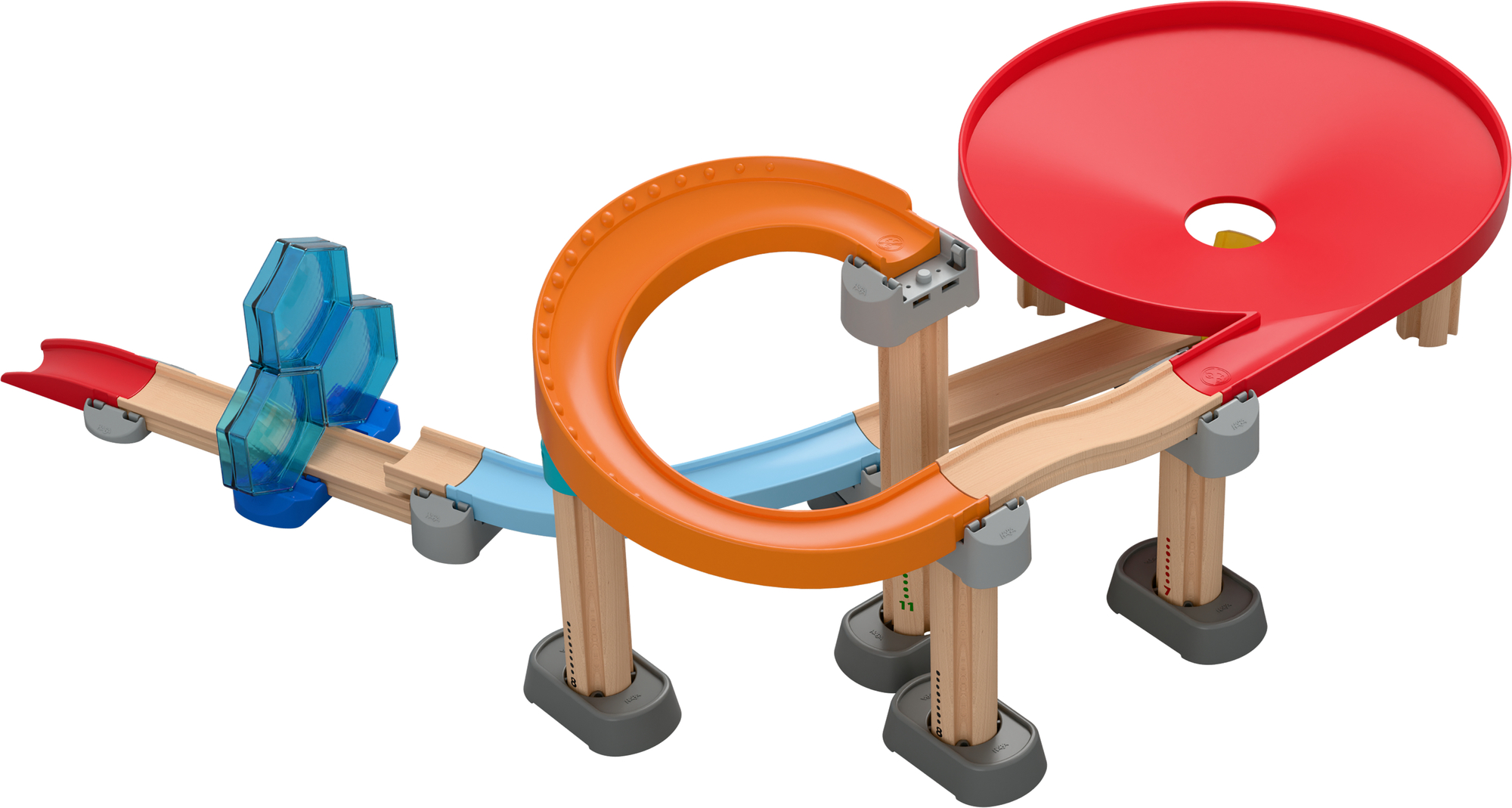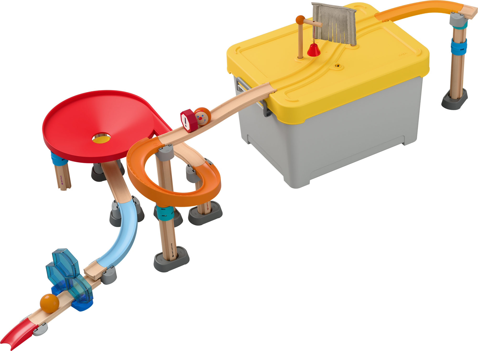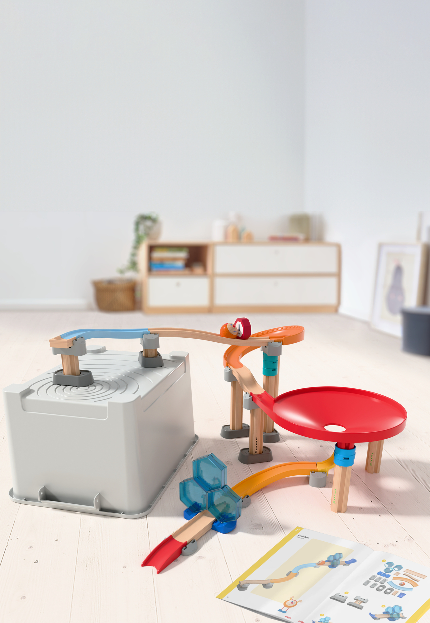 Zatiaľ čo tí úplne najmenší milujú objavovanie guľôčok a s úžasom ich sledujú, ako sa kotúľajú, tí starší pomáhajú s vyberaním dielikov a ich skladaním. Postupom času sa z jednej rovnej dráhy stane zložitá dráha. Hrkajúce zákruty, zvončekové tunely a ďalšie prvky poskytujú extra zábavu.